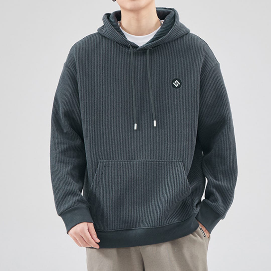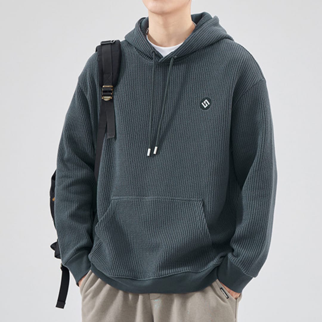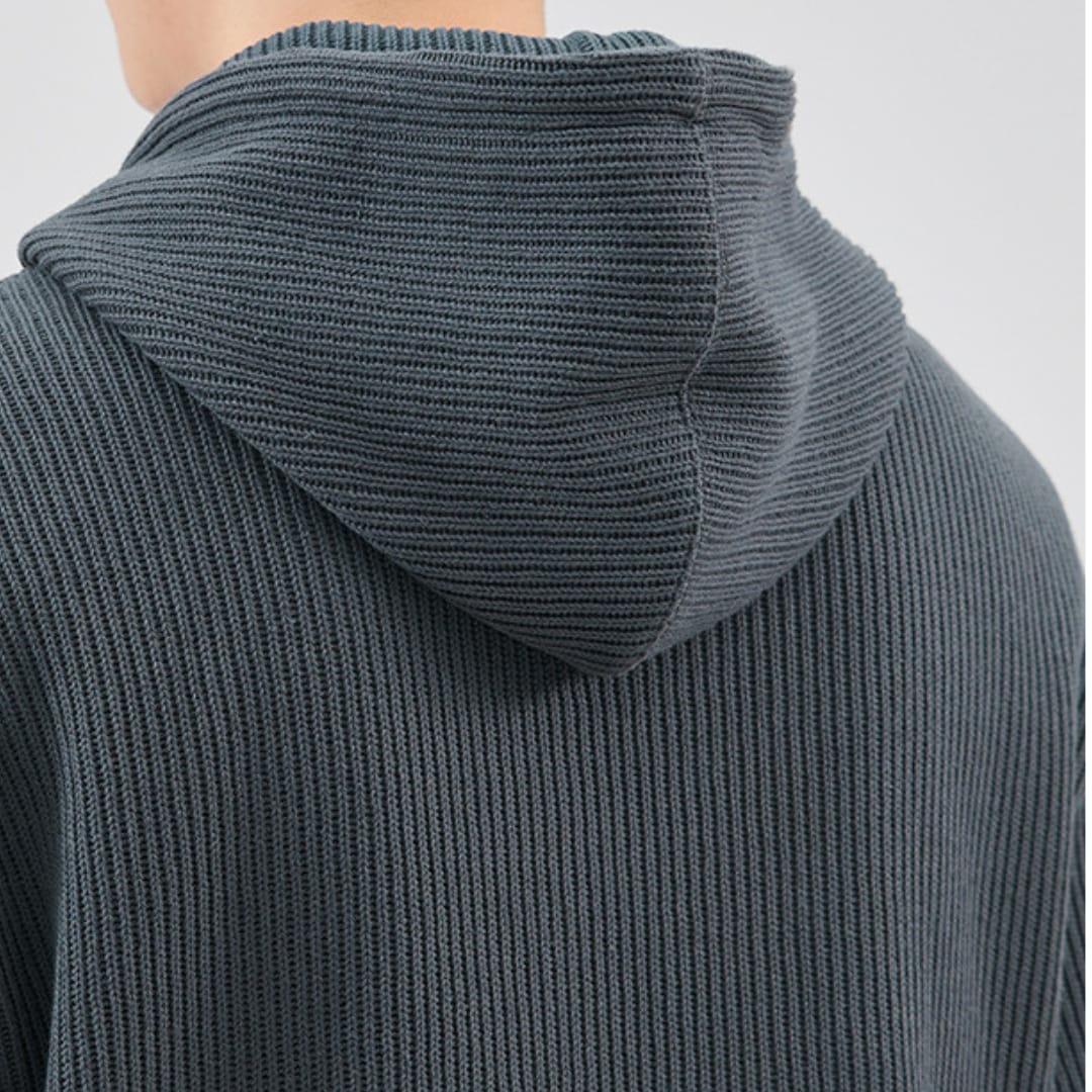 A heavyweight ribbed hooded sweatshirt designed for men who want warmth, comfort, and rugged winter style.