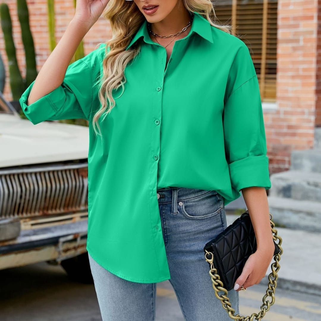 Stay cool and classic with our Womens All Year Round Basic Solid Color Pure Cotton Shirt timeless, breathable, and perfect for everyday wear.