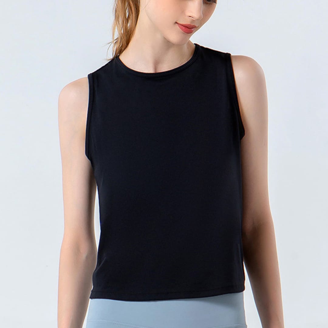 Stay cool and confident in this Basic Solid Color Sleeveless Stretchy Sports Top your go-to for workouts, yoga, or casual wear.