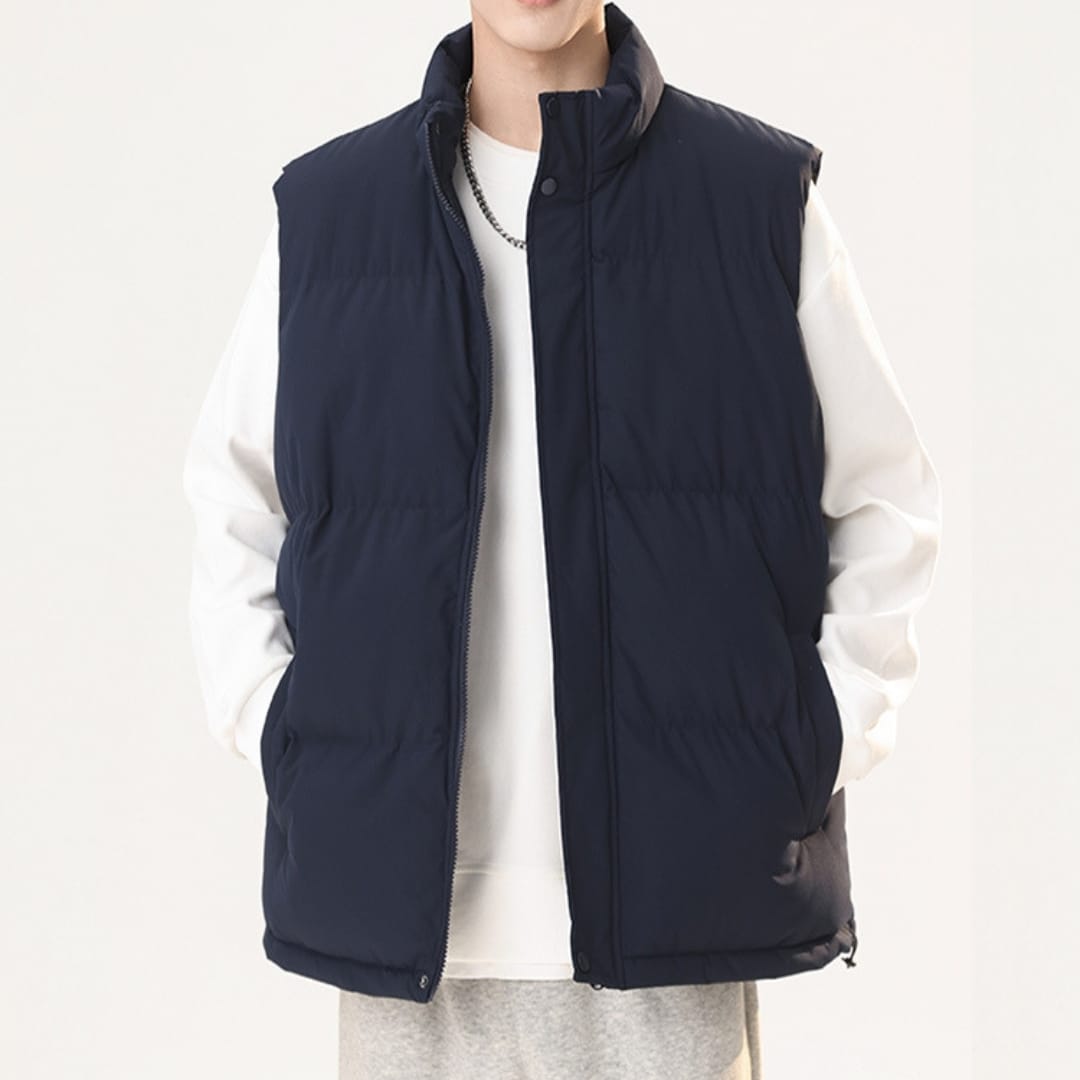 Our Mens Basic Solid Color Winter & Spring Vest is your go-to outerwear piece for transitional seasons. Designed with simplicity and functionality in mind, this vest features a solid color style that pairs easily with any outfit. Ideal for layering, it provides just the right amount of warmth for chilly mornings and cool spring evenings. The lightweight construction and cotton-blend filling ensure comfort and breathability without sacrificing insulation. With a zip-up front and handy side pockets, its perfect for daily wear, travel, or casual outings. Stay comfortable, look sharp, and embrace the changing weather in effortless fashion.