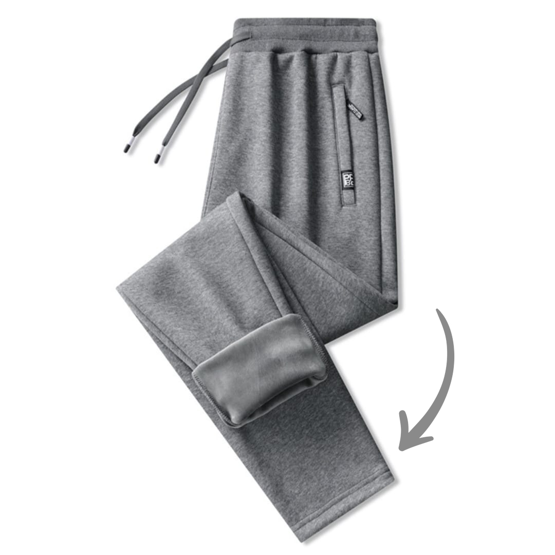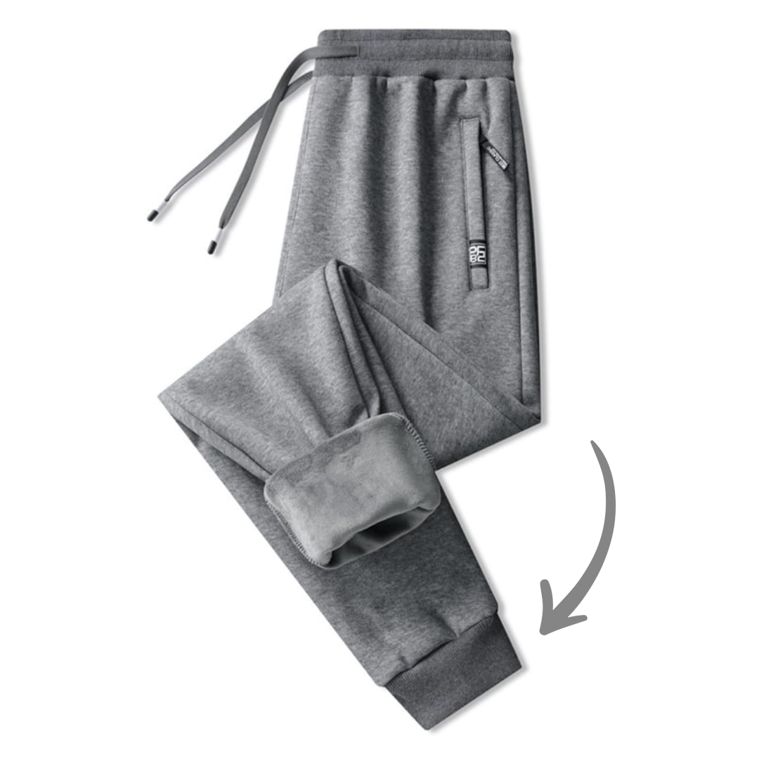 Basic solid color heavyweight fleeced pants for men, perfect for winter warmth.