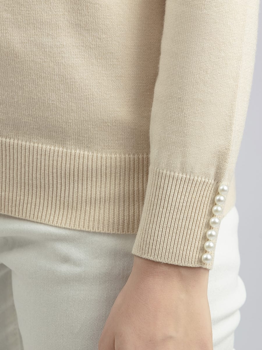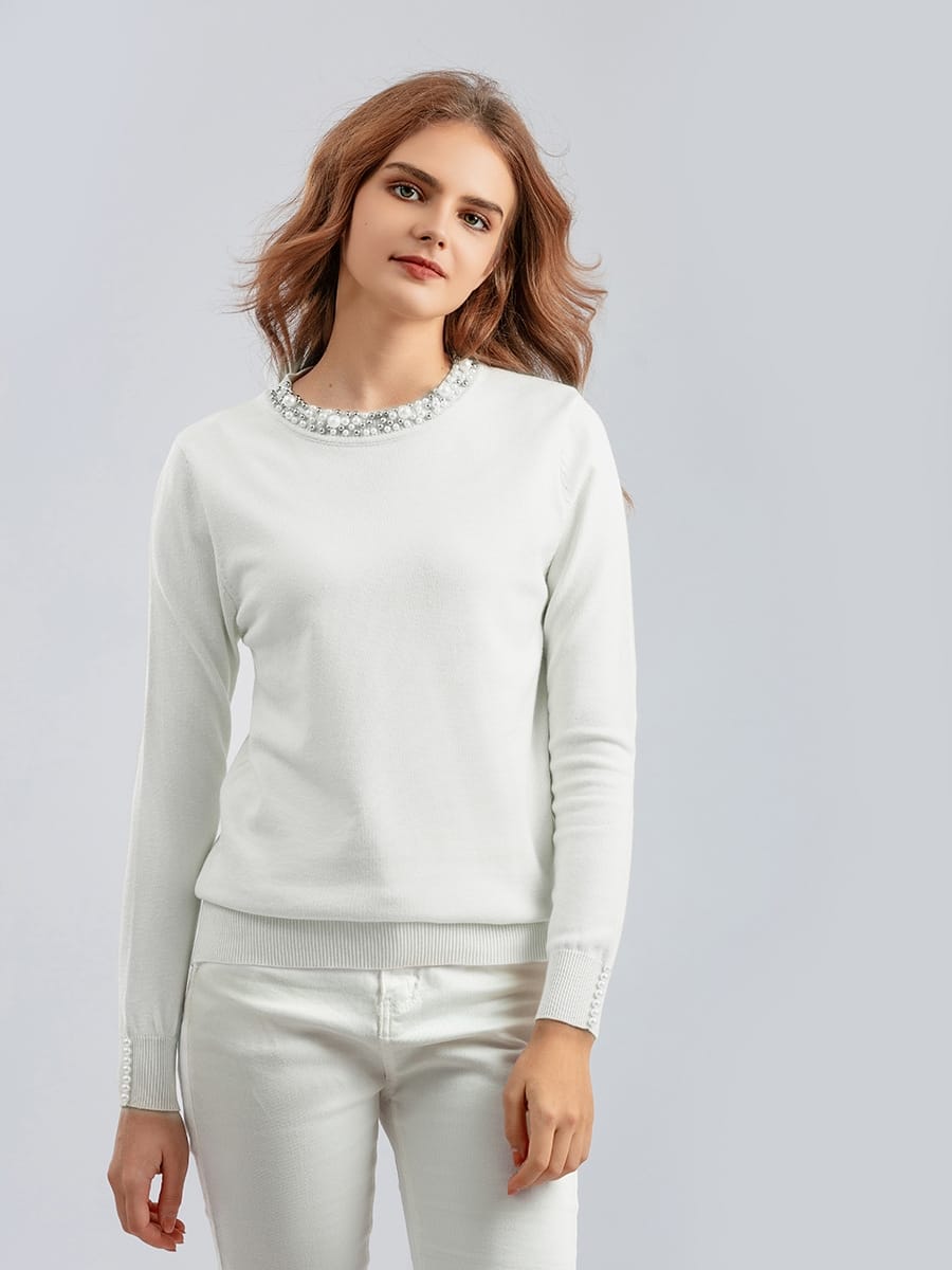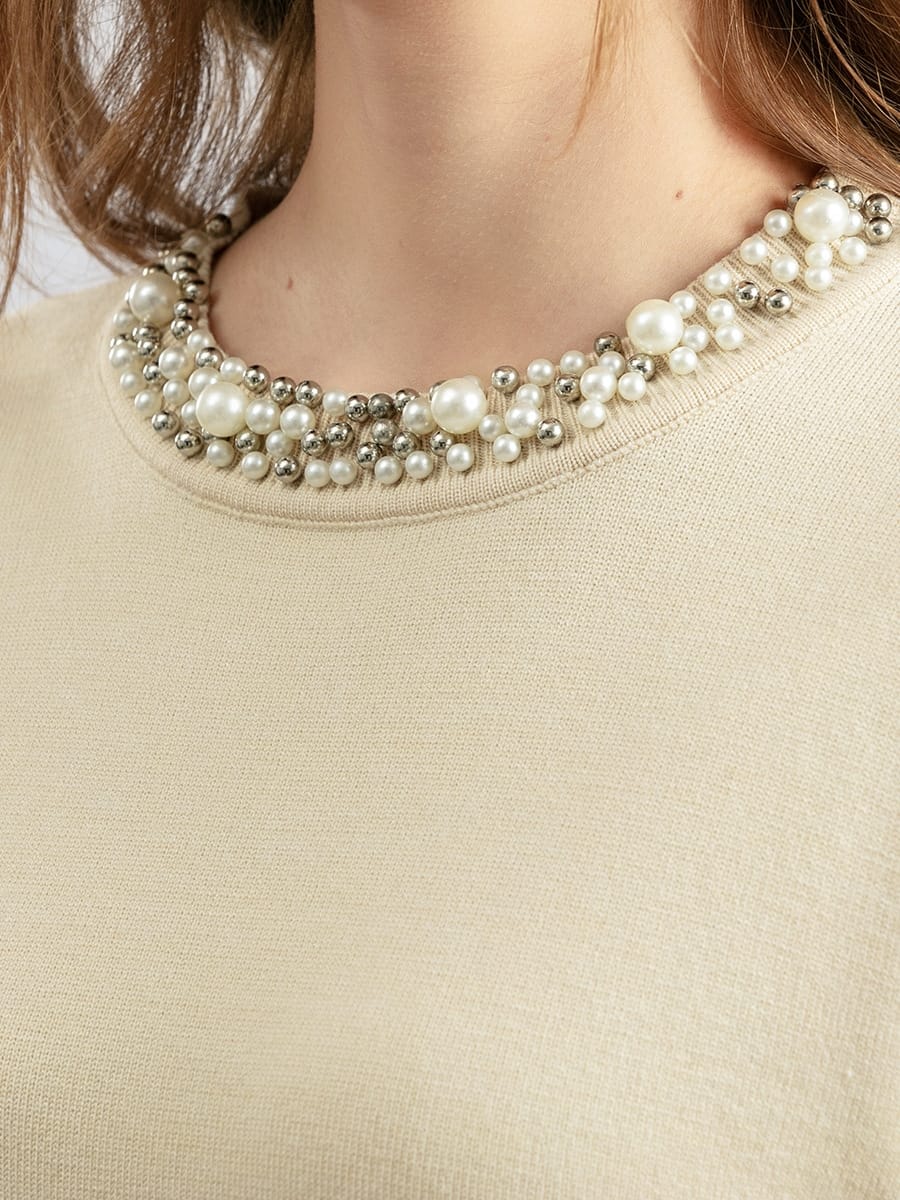 Beaded Knitted Round Neck Slim Fit Thin Sweater