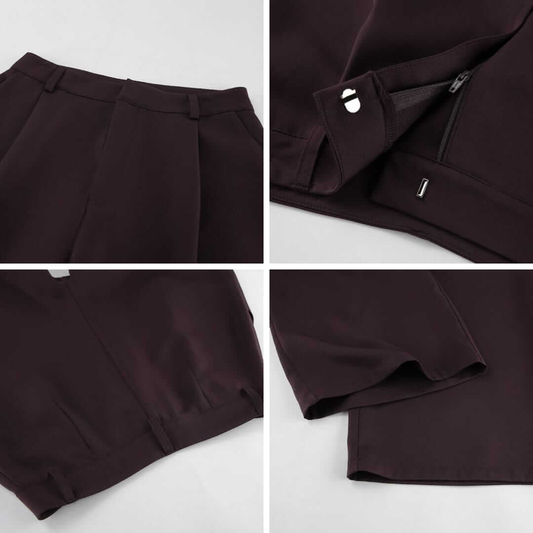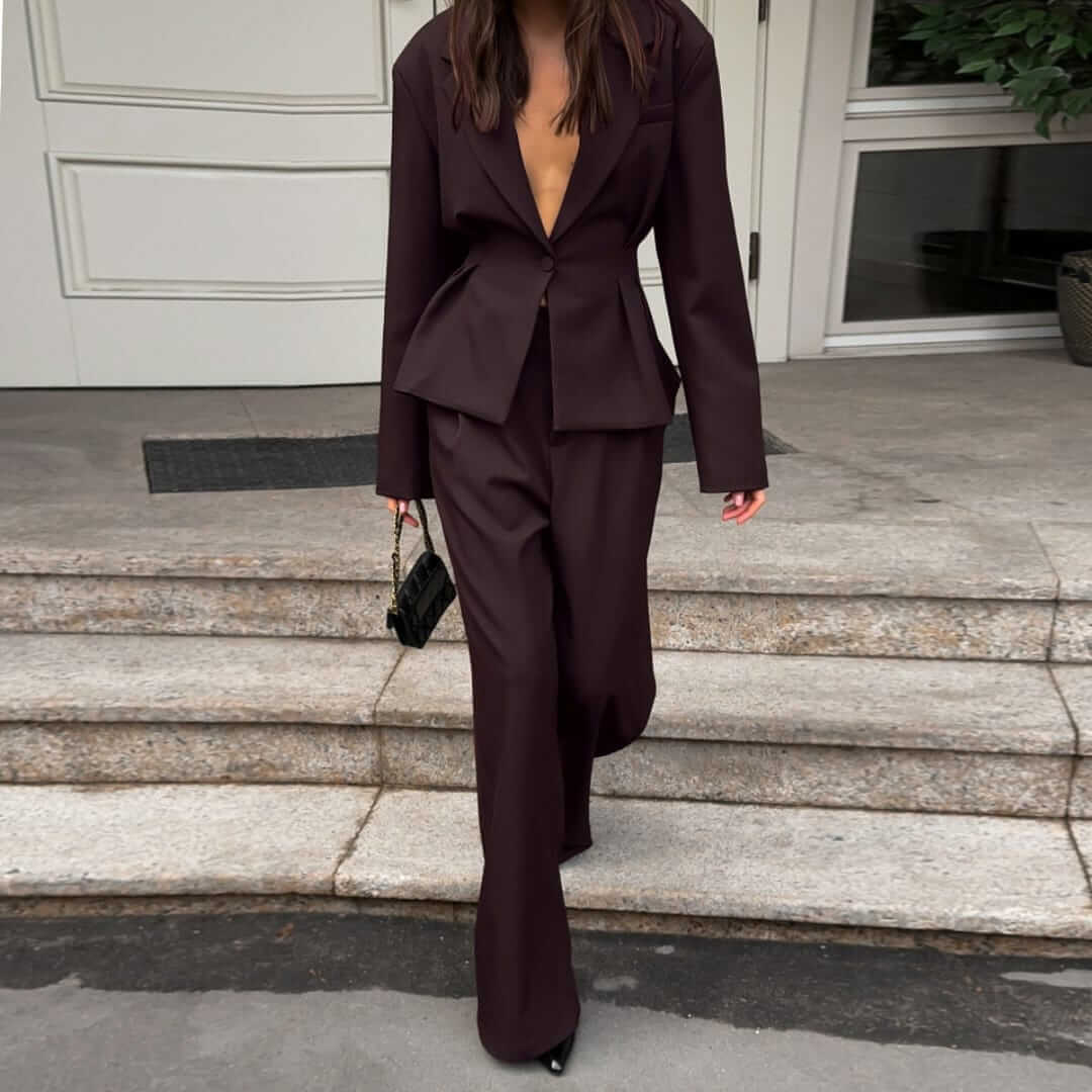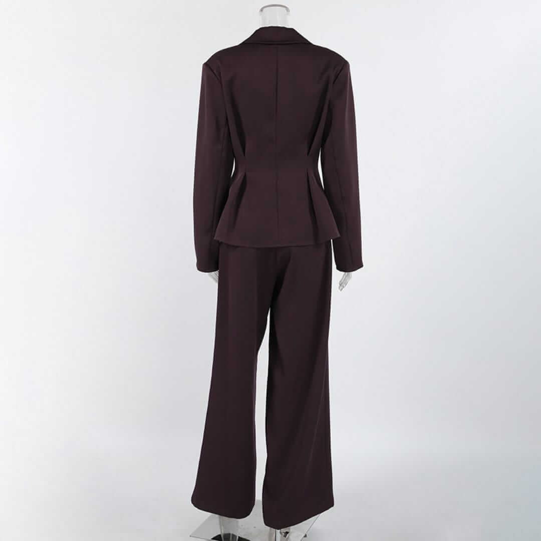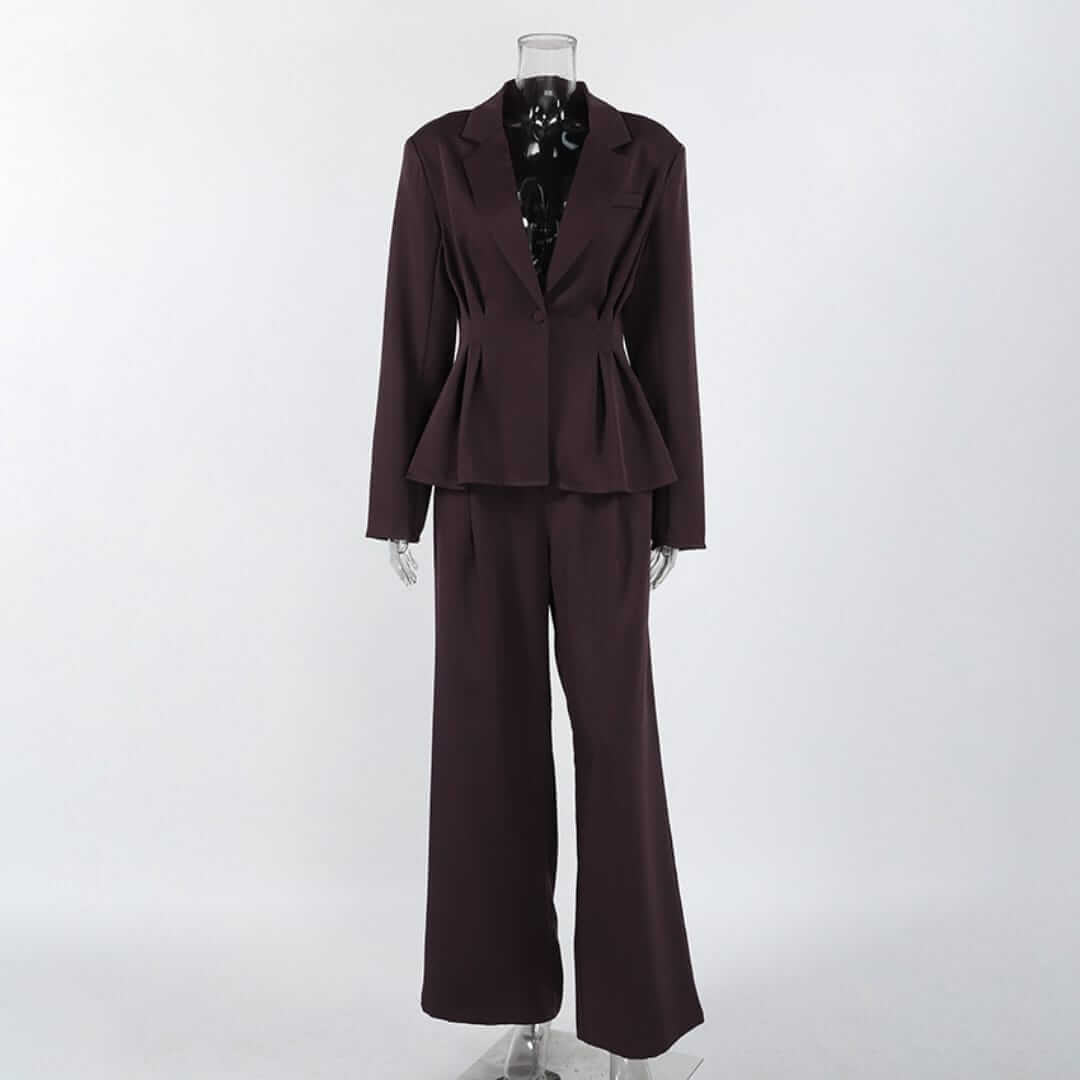 Elegant women’s blazer and pleated wide leg pants set offering a polished, modern look with effortless comfort.
