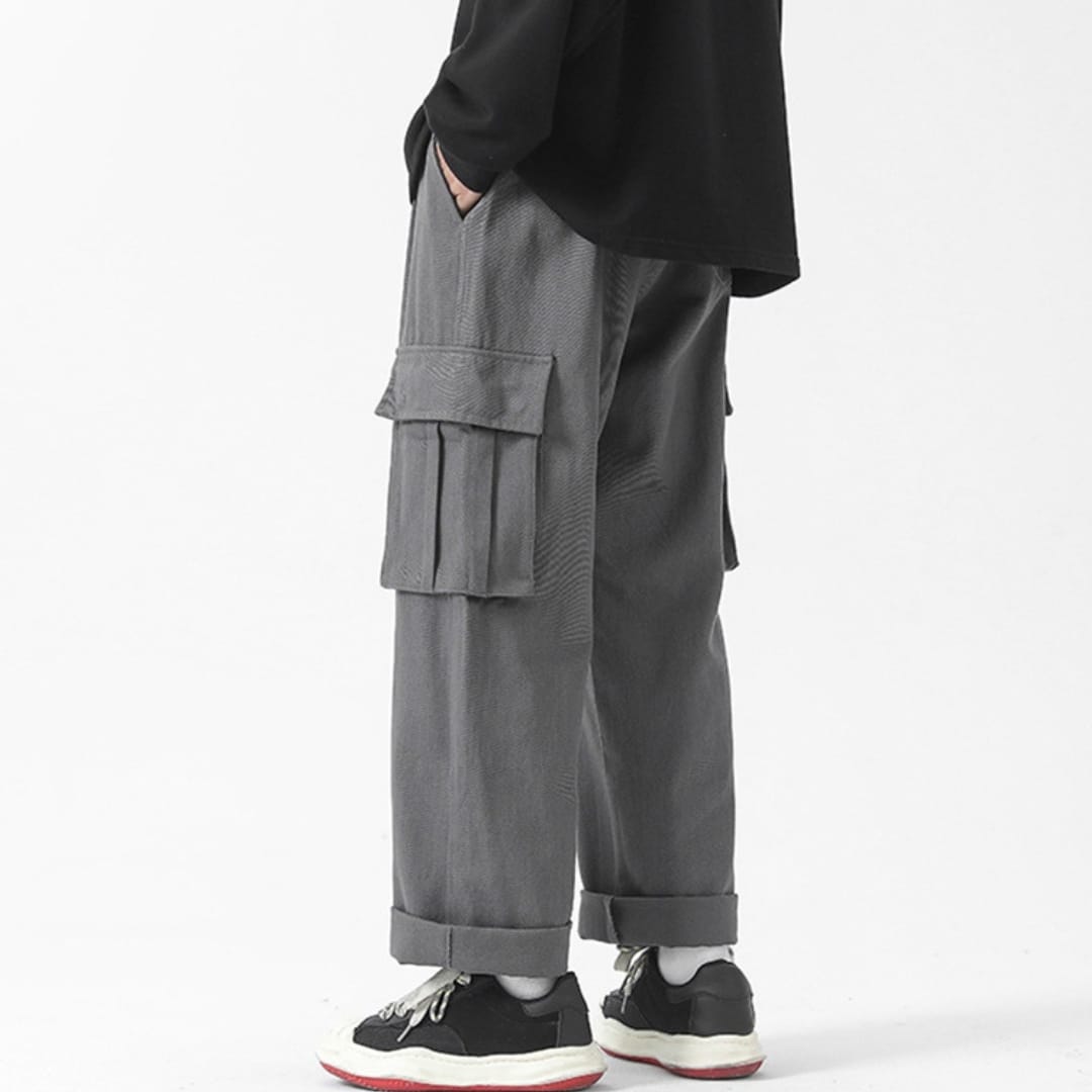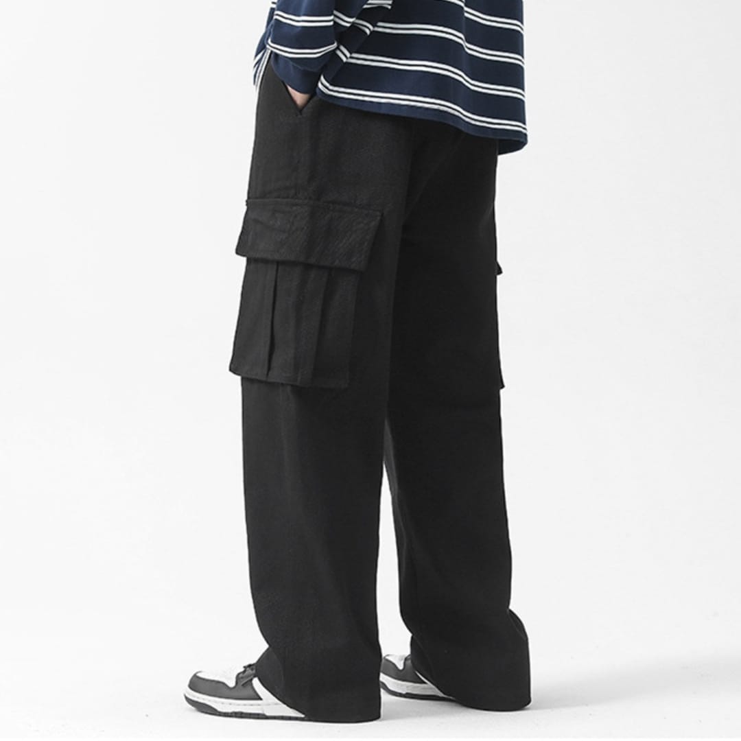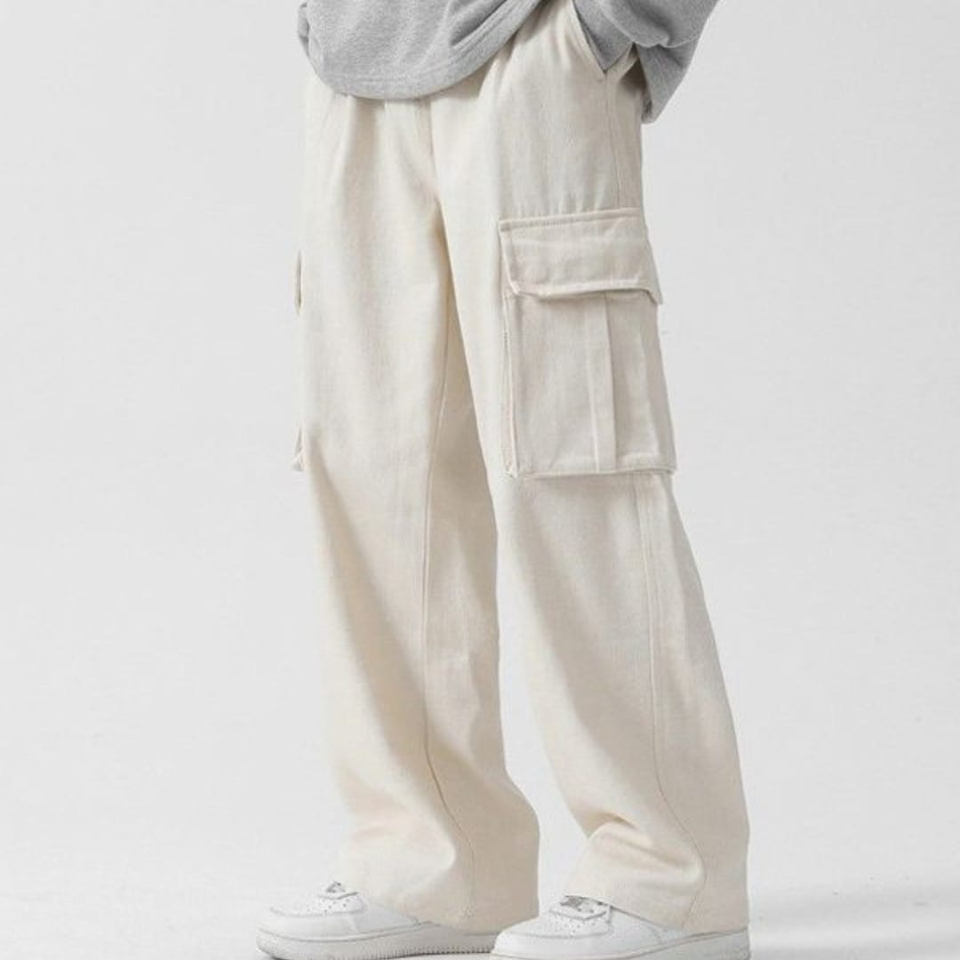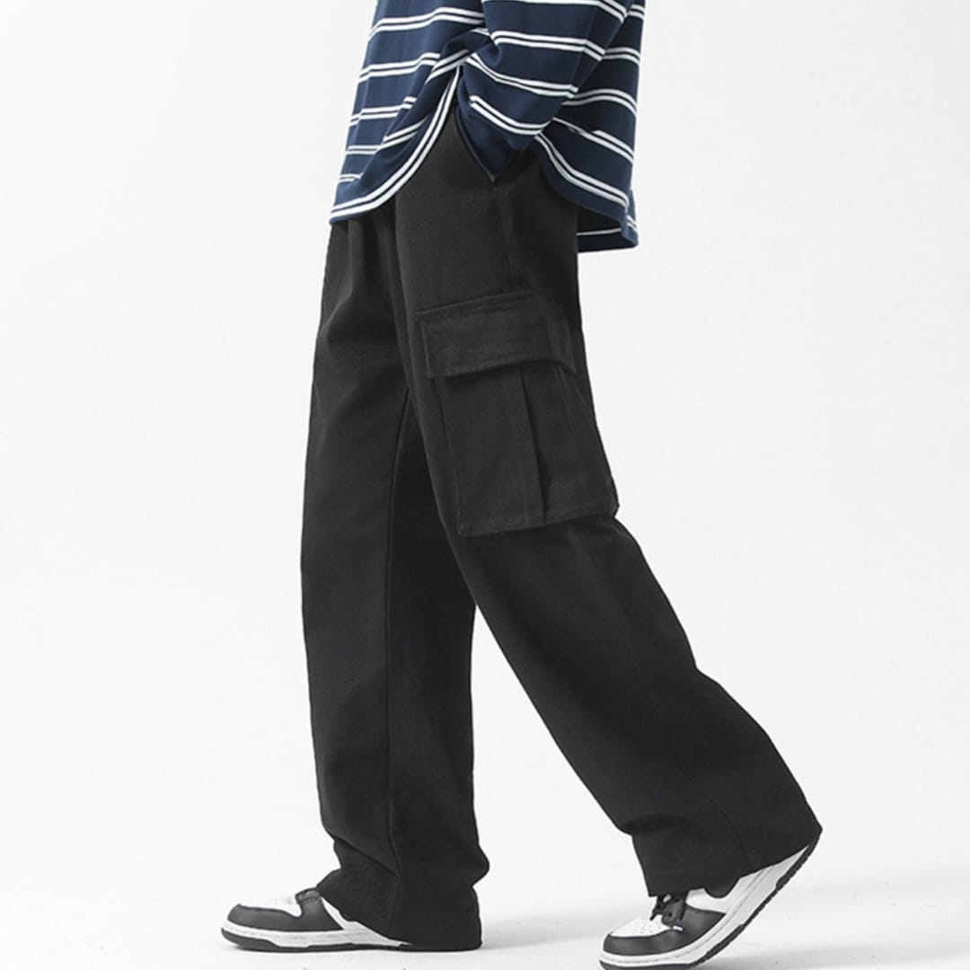 Mens autumn and winter cargo cotton pants with a loose fit durable, comfortable, and perfect for casual outdoor wear.