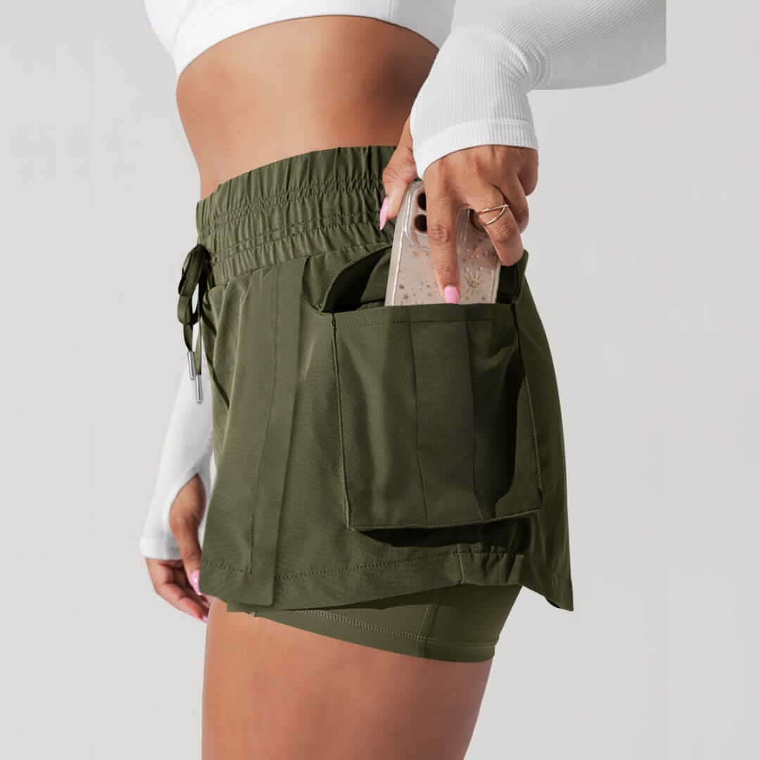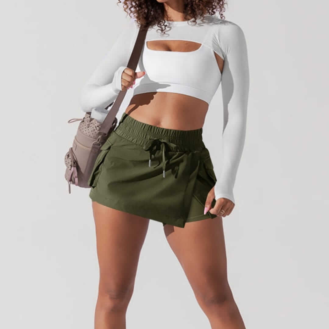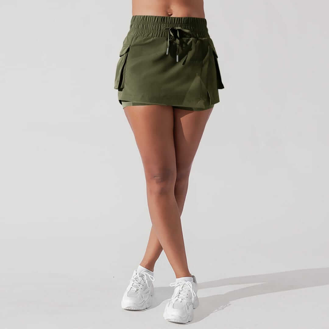 Stylish women’s cargo military mini skorts combining skirt design with shorts comfort—featuring utility pockets and a trendy edge for everyday casual wear.
