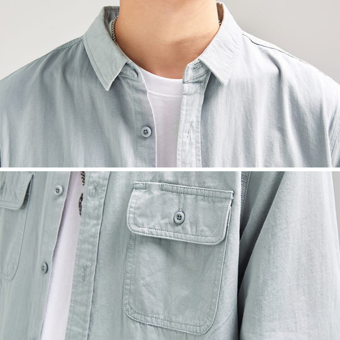 Casual Long-sleeved Cotton Shirt with Chest Pockets