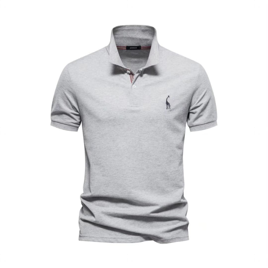 Casual Polo T-Shirt with Embroidered Giraffe