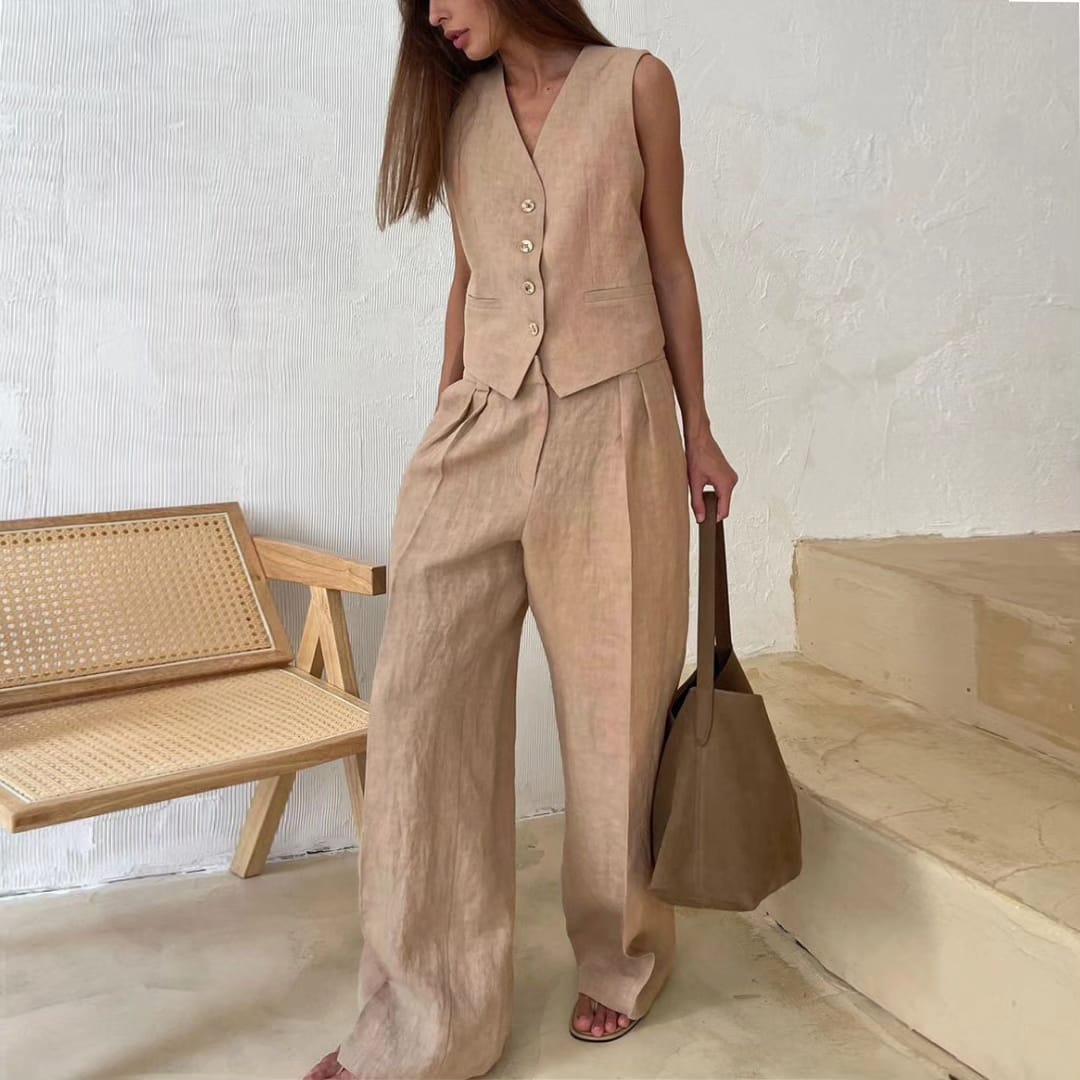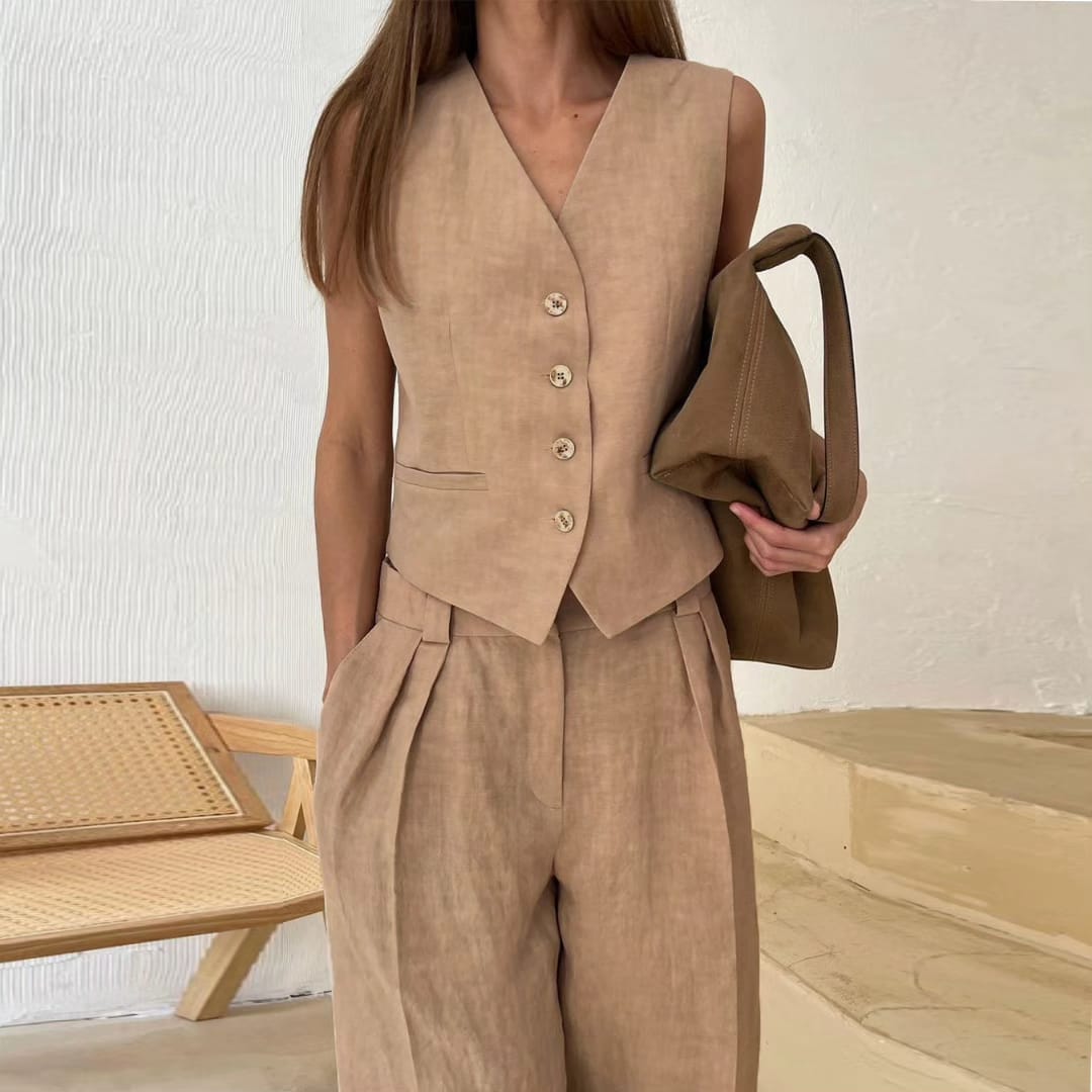 Stay cool and stylish this season with our Summer 2-Piece Casual Set of Vest & Low Waist Pants. Designed for effortless comfort, the sleeveless vest pairs perfectly with the matching low-waist pants to create a chic, laid-back outfit. Made from lightweight, breathable fabric, this set is ideal for summer days, whether youre heading out for brunch, lounging with friends, or enjoying a beachside stroll. Versatile and easy to style, it can be dressed up with heels or kept casual with sandals or sneakers.