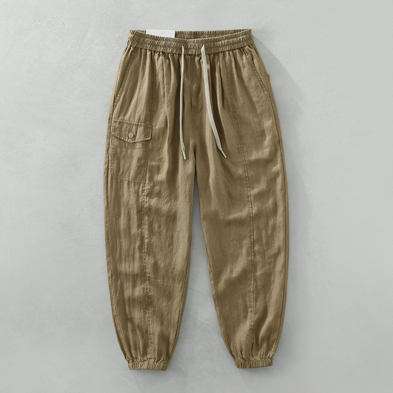 Lightweight mens cropped linen pants for summer. Breathable, stylish, and perfect for casual wear, beach, and travel.