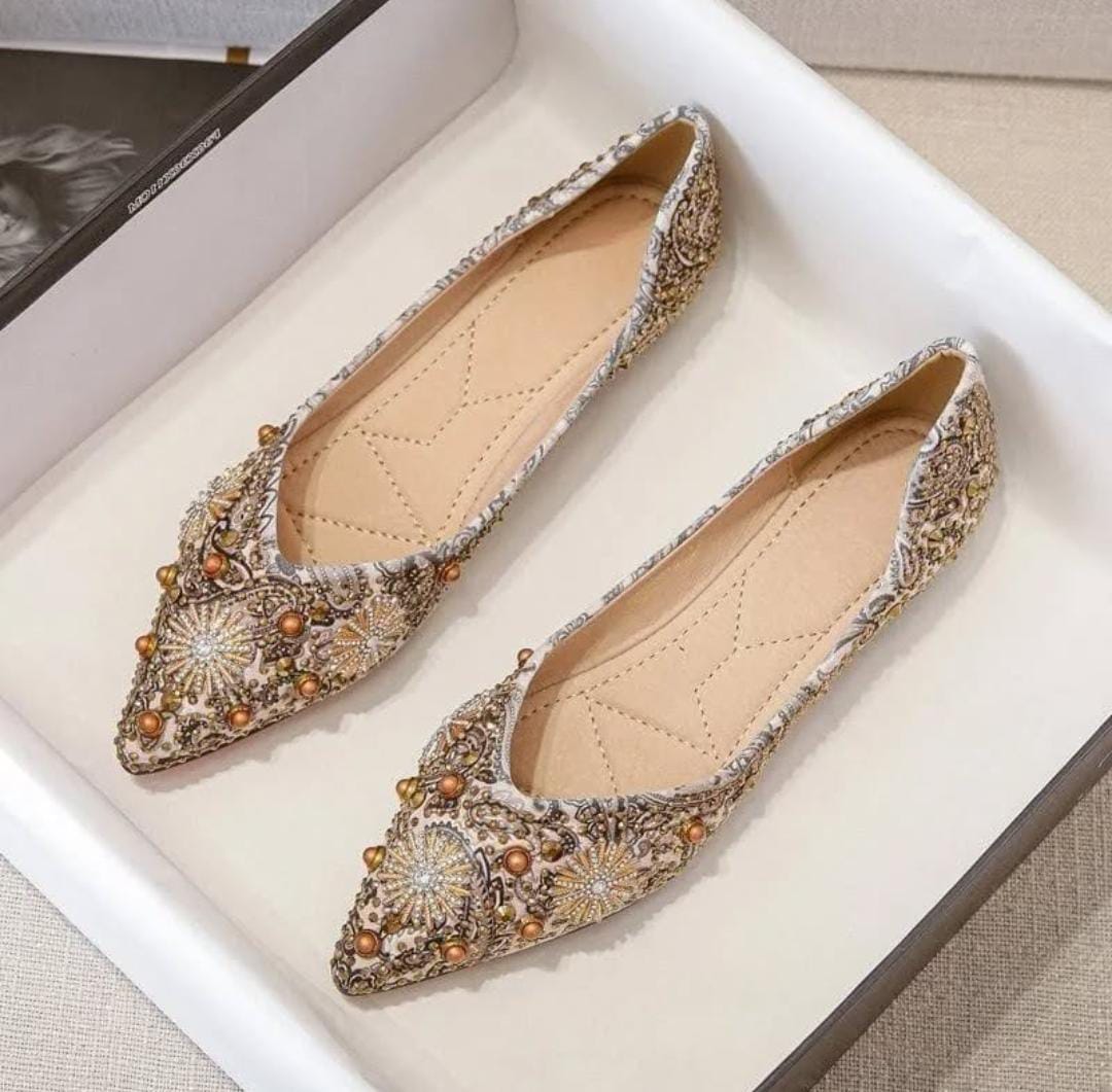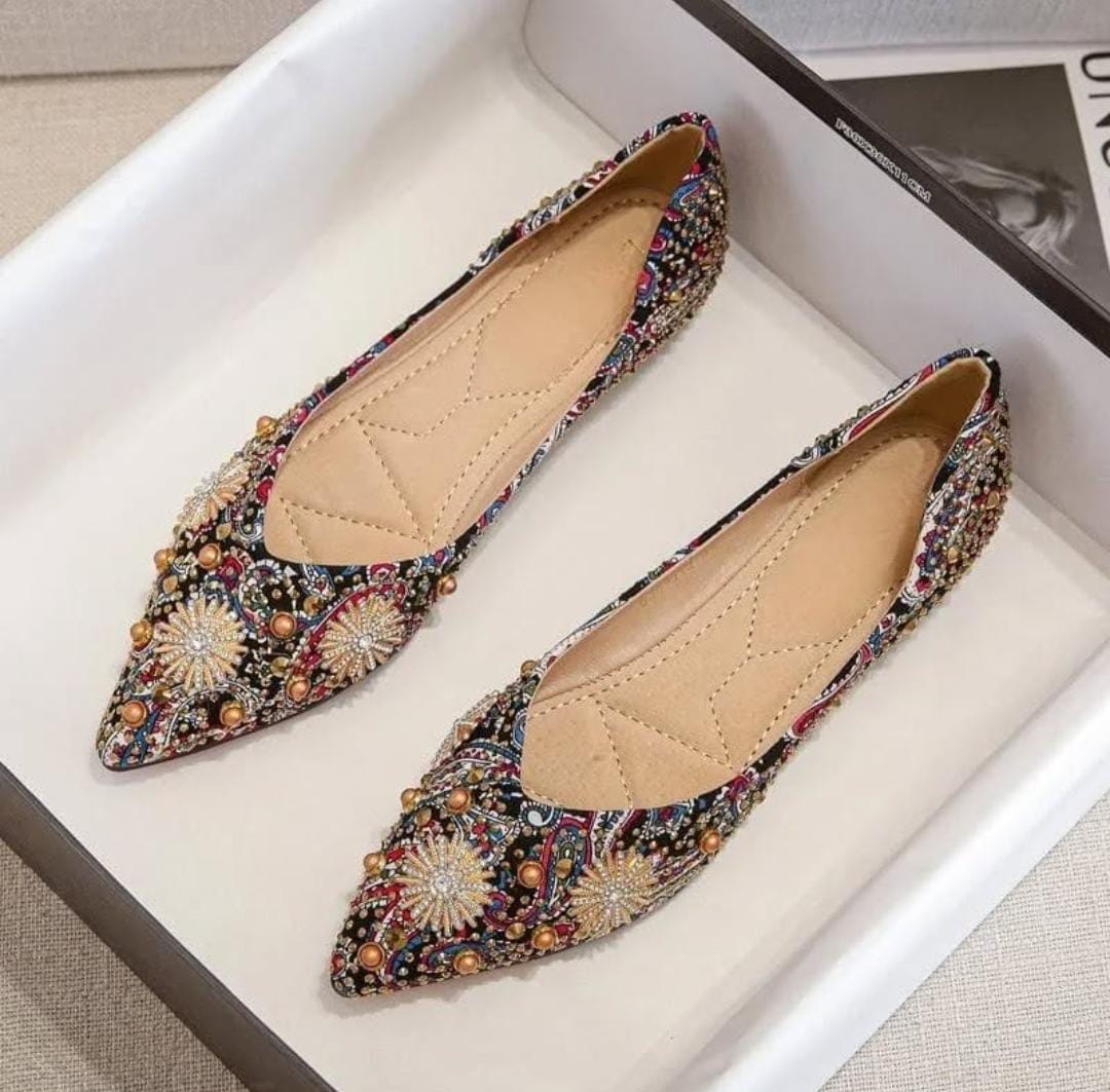 Classy Pointed Toe Fully Beaded Flat Ballerina