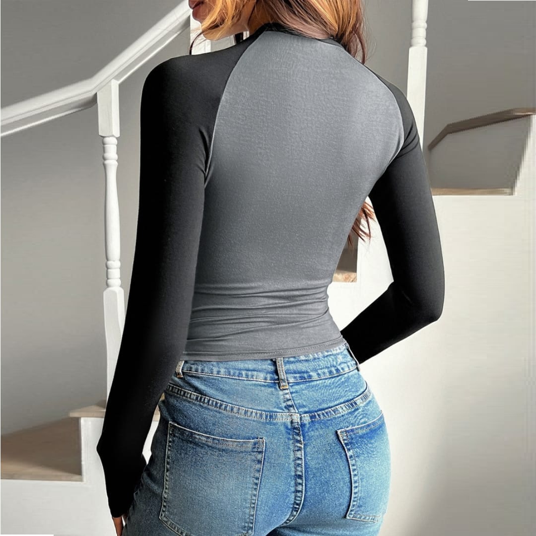 Add a pop of style to your wardrobe with our Womens Color Contrast Round Neck Slim Fit Stretchy Top trendy, comfortable, and perfect for any season.