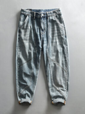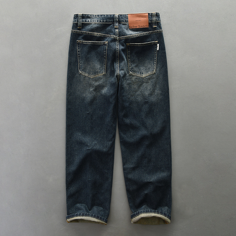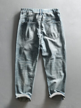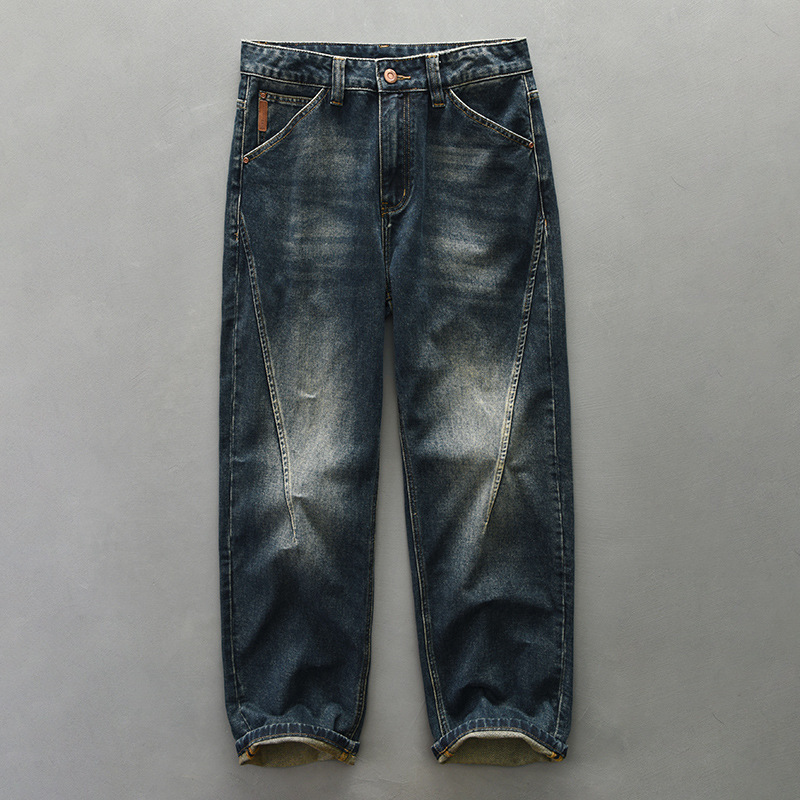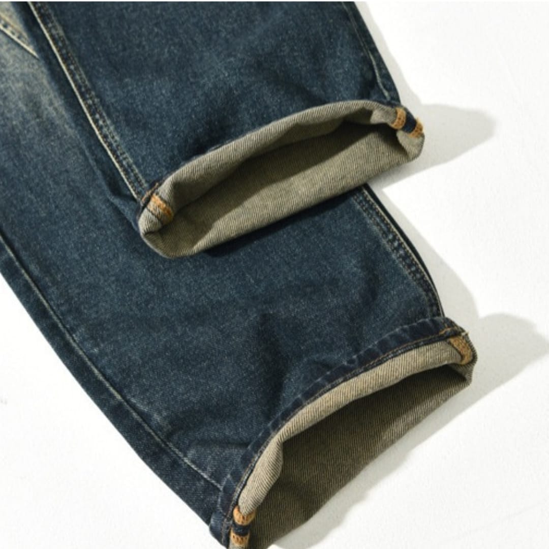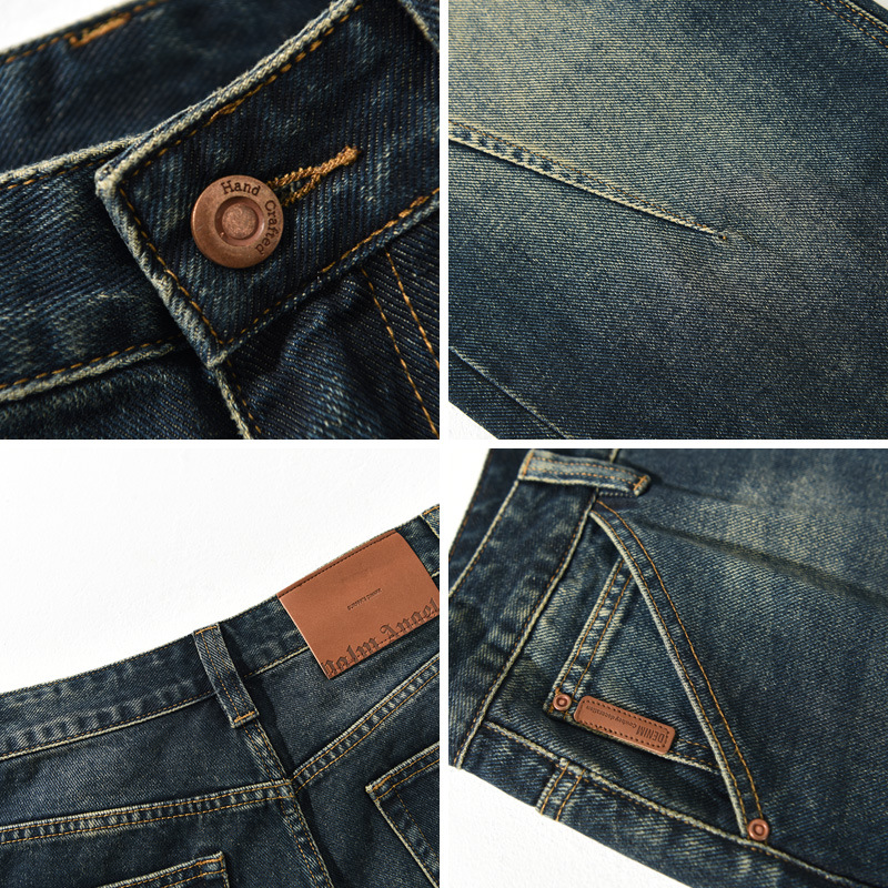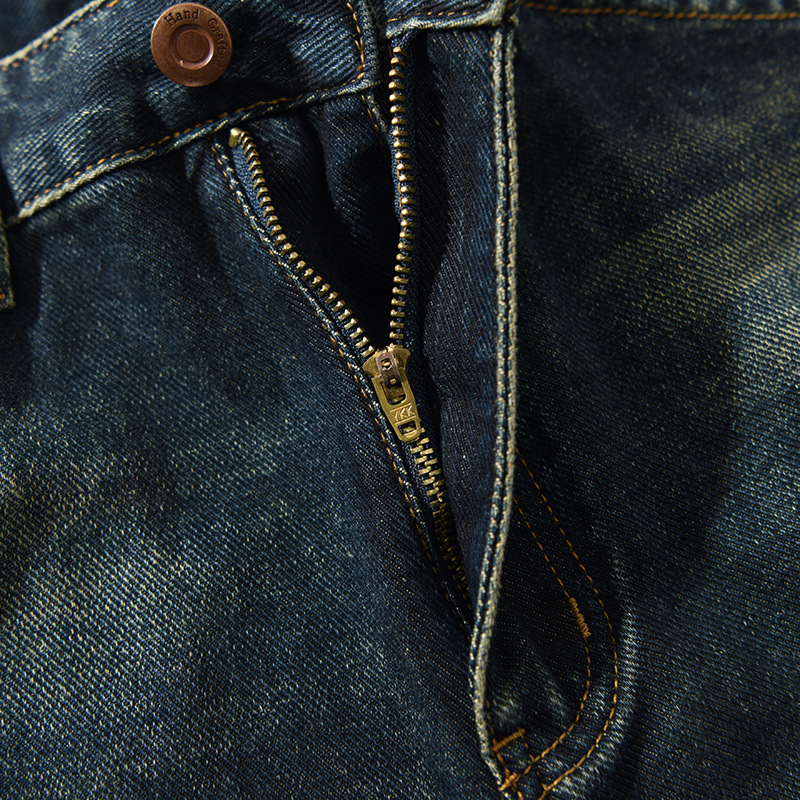 Vintage high-end YKK zipper washed denim jeans for men, designed for all-year-round wear, offering durability, comfort, and a stylish retro-inspired look.
