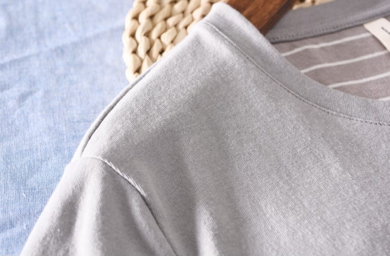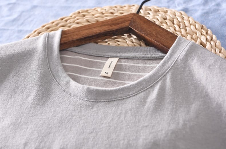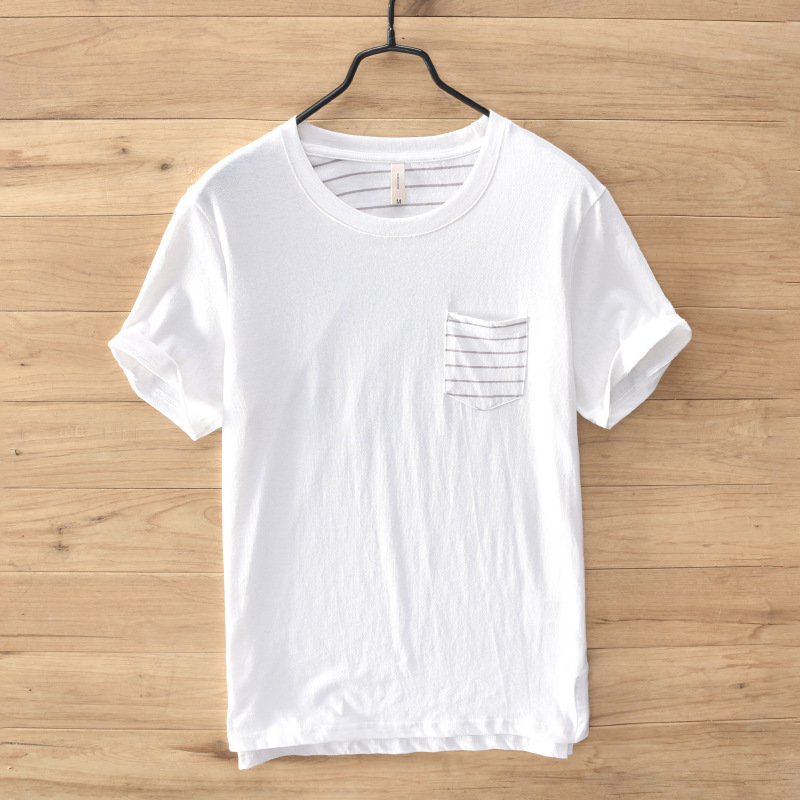 Cotton Basic Color T-shirt with Striped Chest Pocket