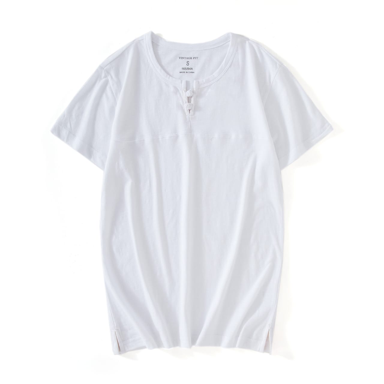 Stay cool and stylish in this 100% pure cotton summer T-shirt, featuring a solid color design and premium fabric buttons for a refined touch.