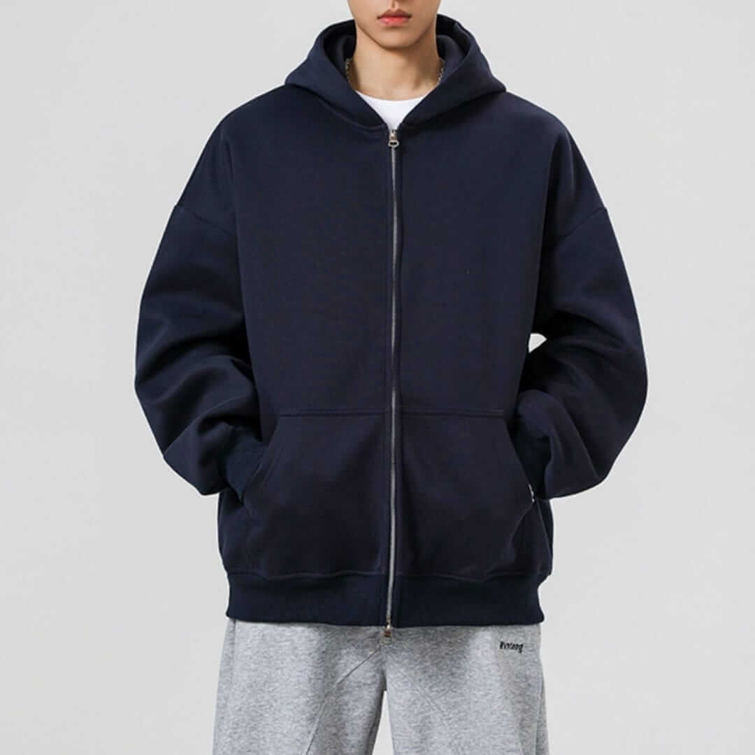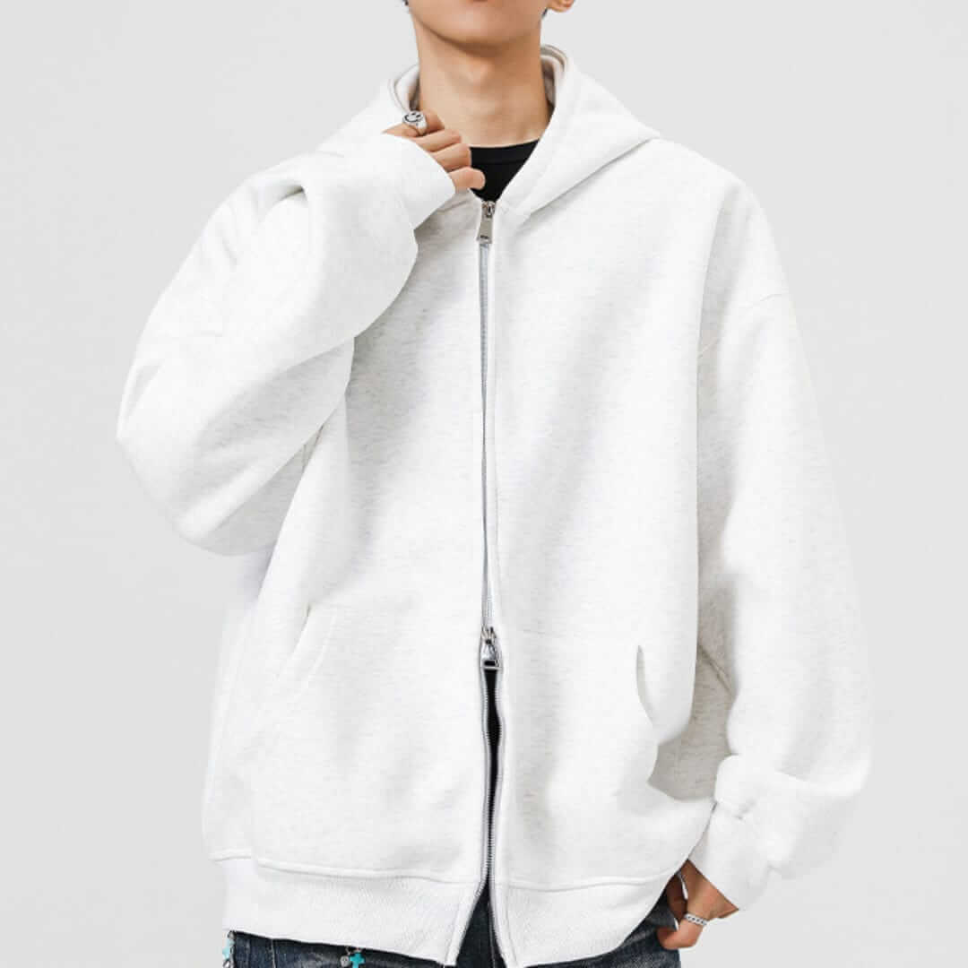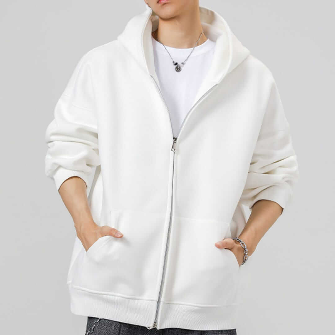Stay comfortable and stylish with this mens cotton basic zip hoodie, perfect for everyday wear and effortless layering.