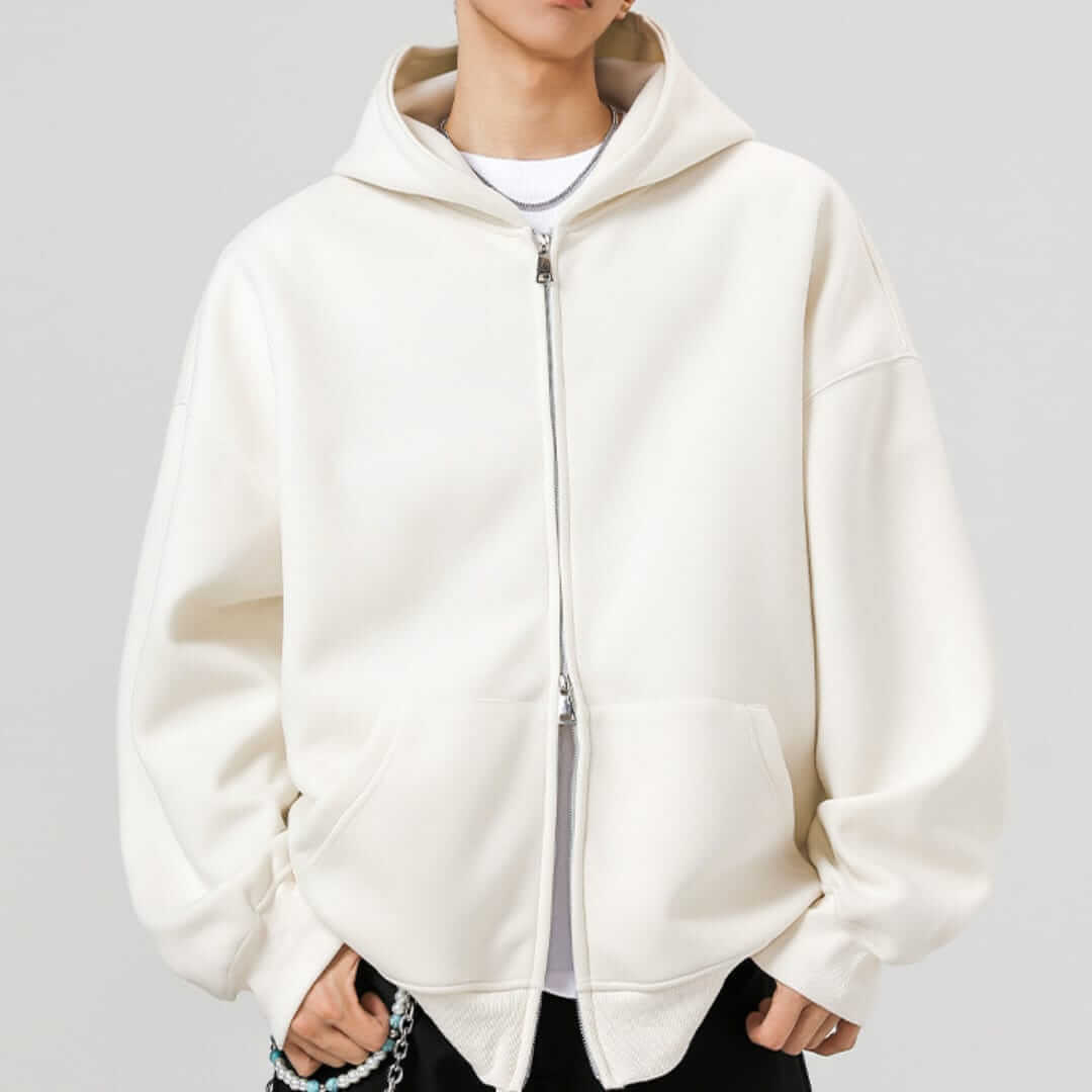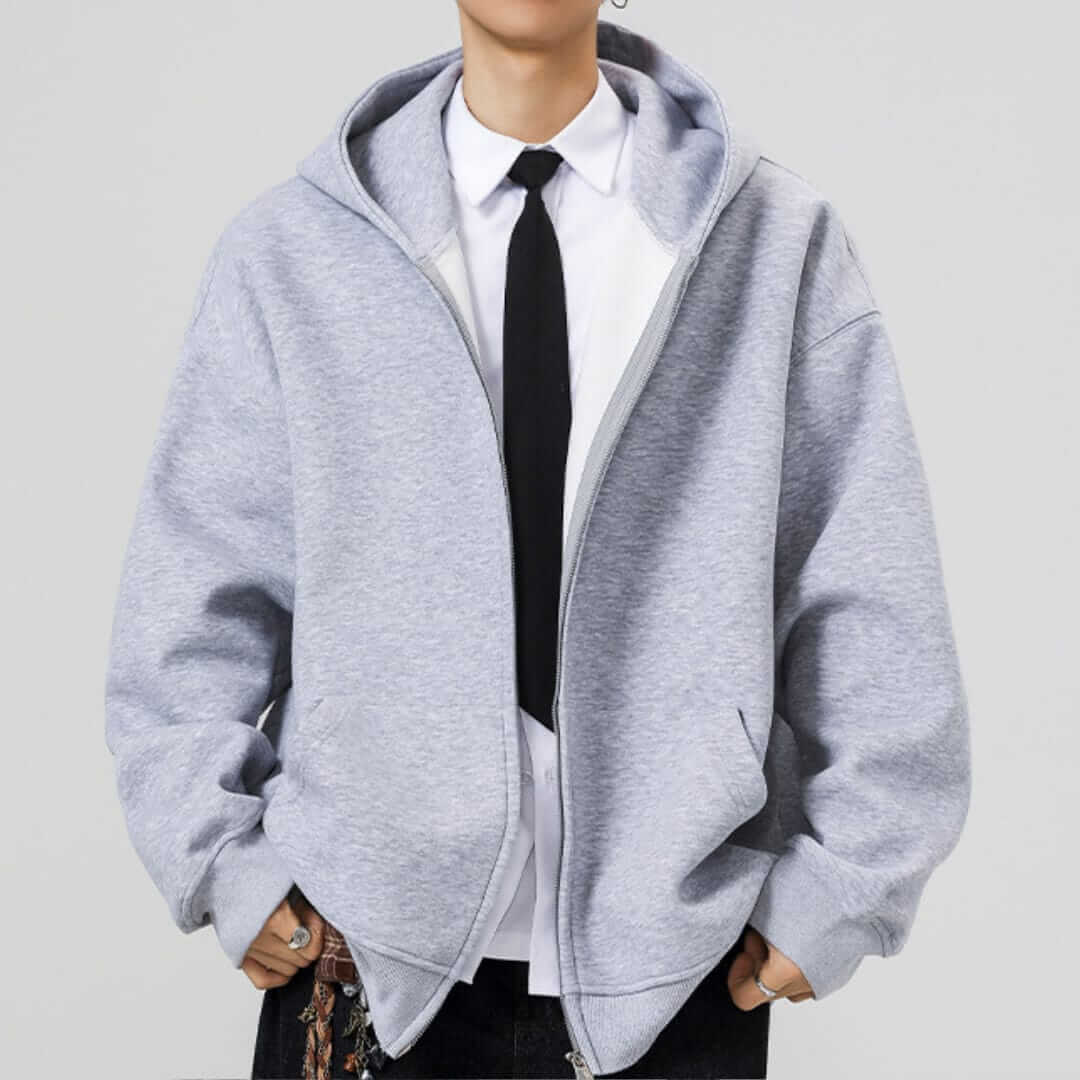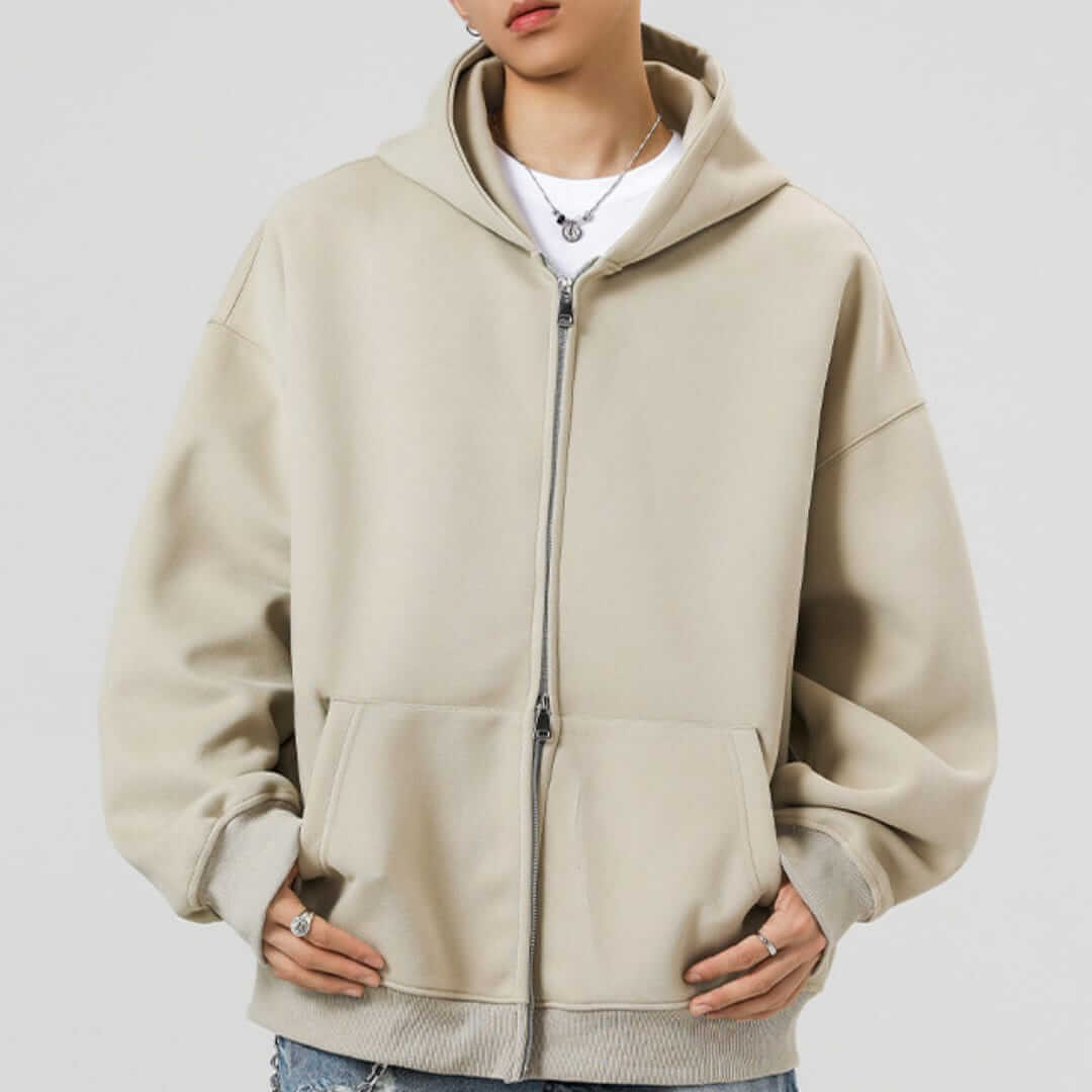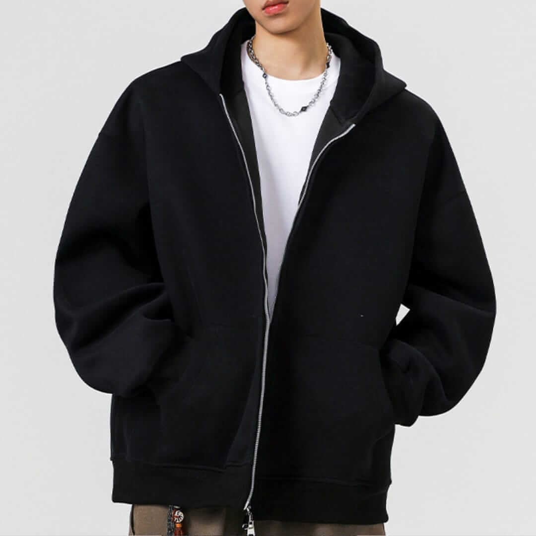 Stay comfortable and stylish with this mens cotton basic zip hoodie, perfect for everyday wear and effortless layering.