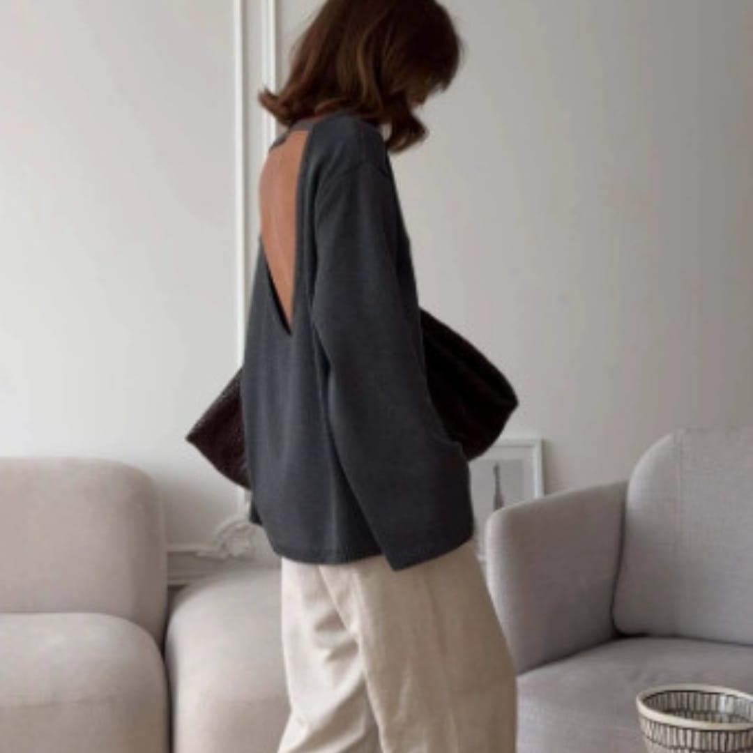Stay effortlessly stylish and comfortable with the Pure Cotton Fall and Winter Loose Fit Backless Knitted Sweater a chic statement piece for cozy seasonal outfits.