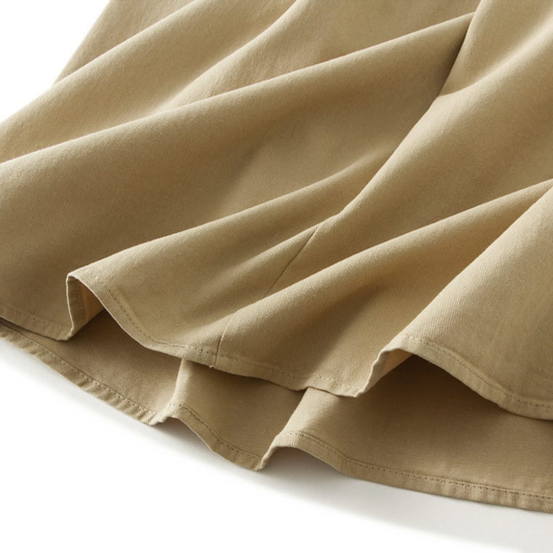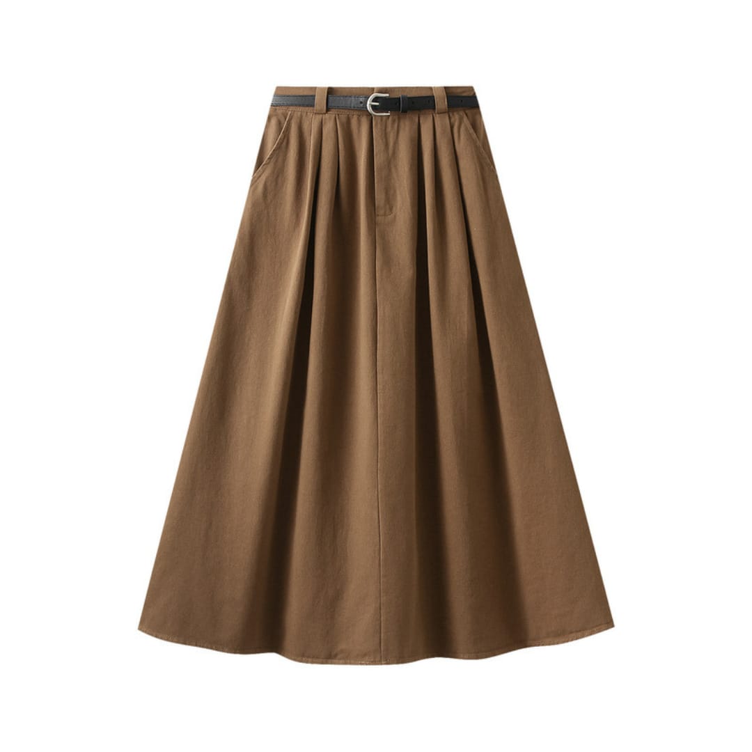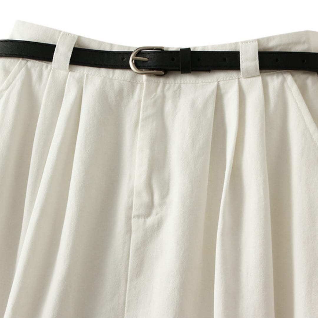 Breathable cotton midi skirt featuring a waist-defining belt for casual comfort and everyday style.