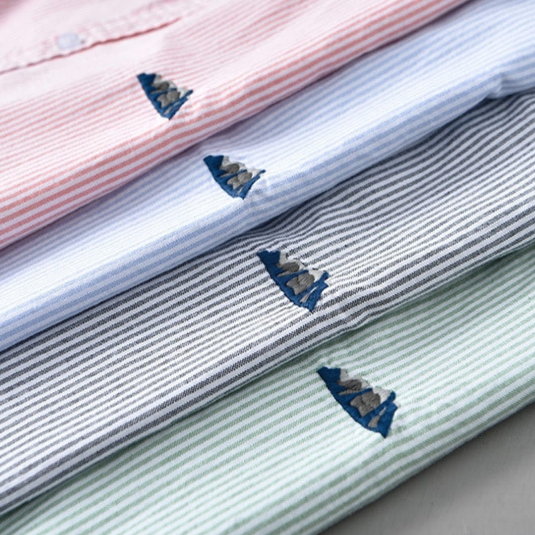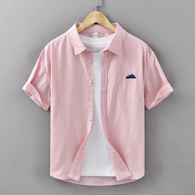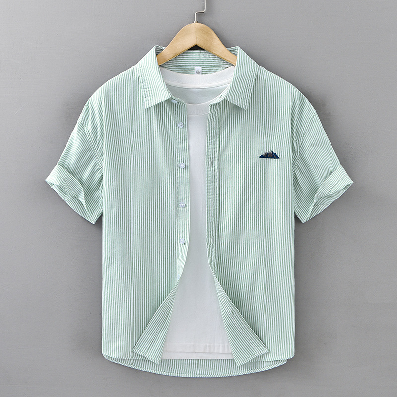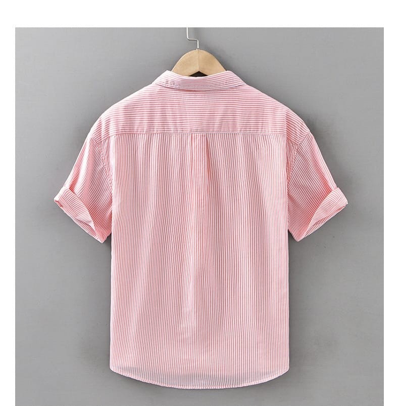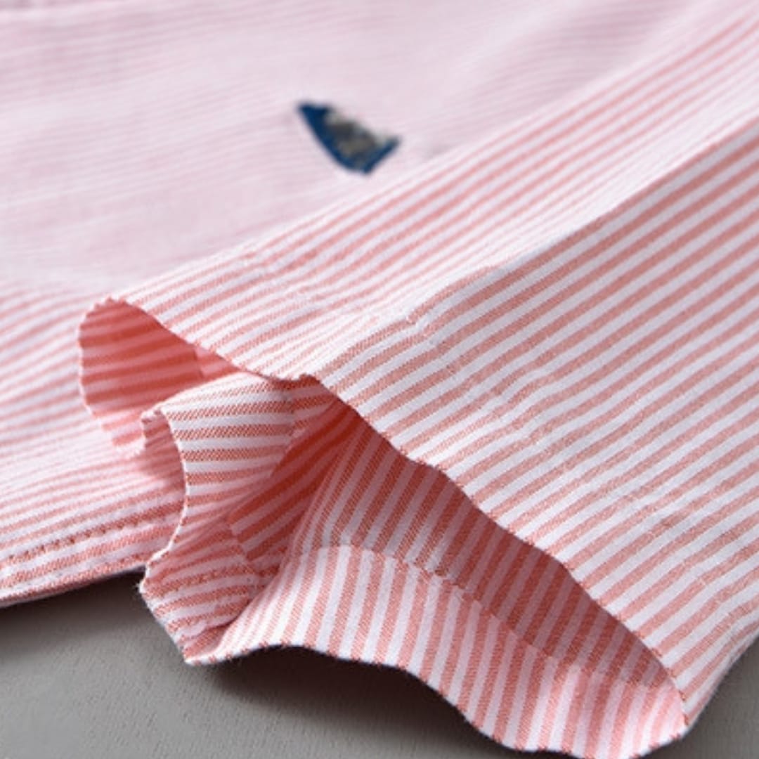 Stay stylish and comfortable with this 100% pure cotton short sleeve striped shirt, featuring elegant chest embroidery and a breathable fit perfect for casual or semi-formal summer looks.