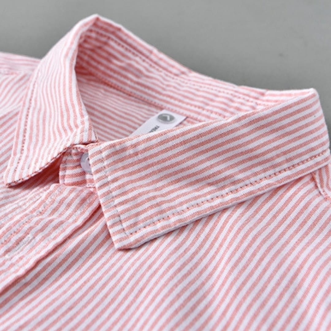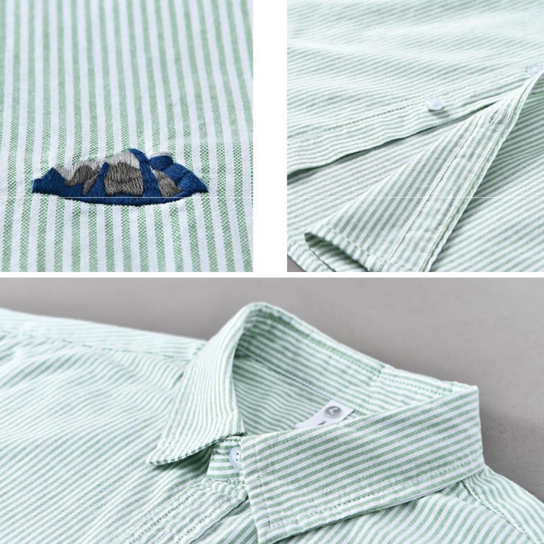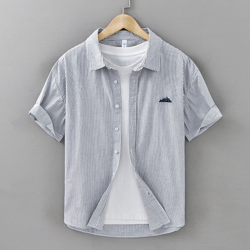 Cotton Short Sleeve Striped Shirt with Chest Embroidery