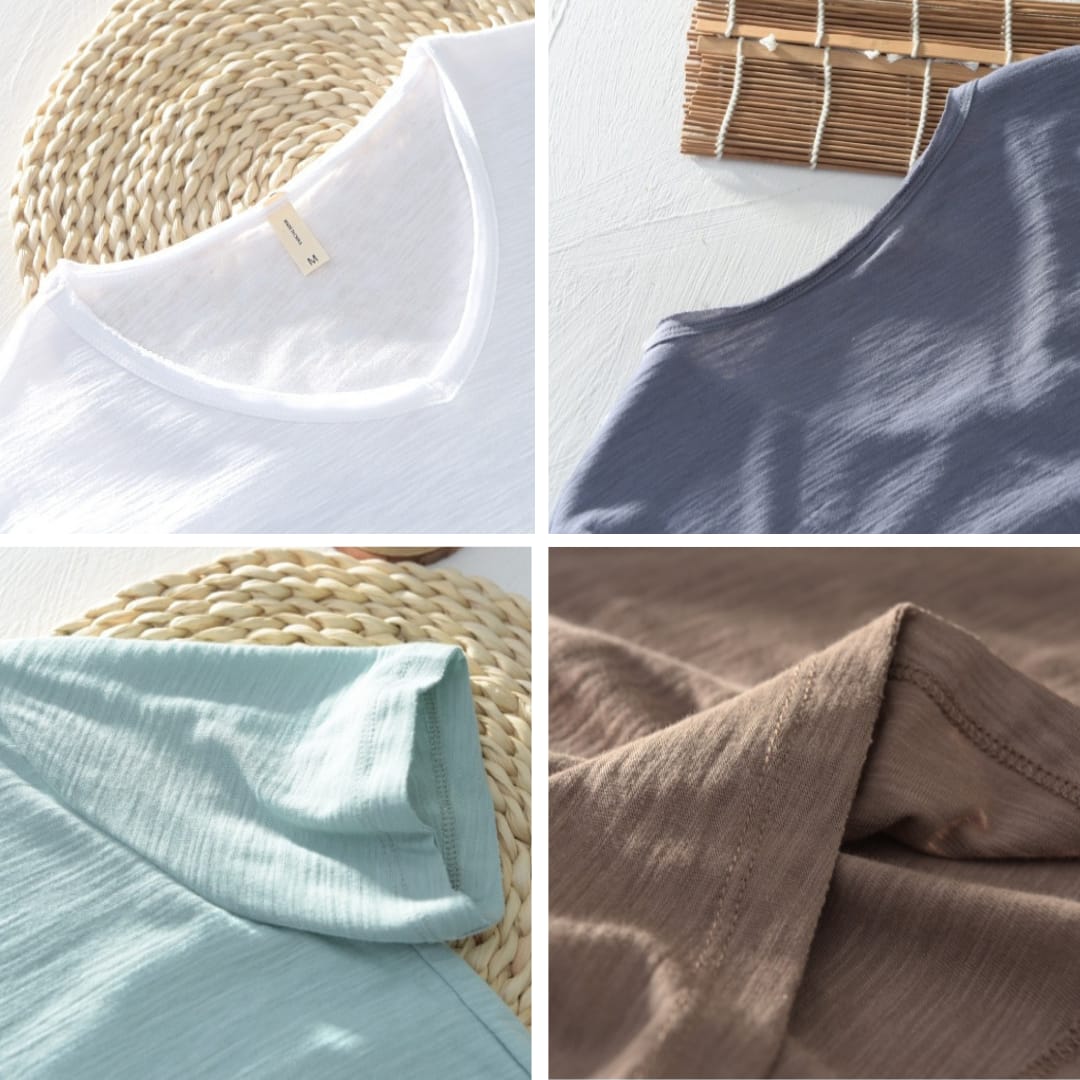 Upgrade your casual wardrobe with the Mens Cotton Unfinished Hem V-Neck Tee. Crafted from 100% soft, breathable cotton, this tee ensures comfort throughout the day while maintaining a sleek, modern style. The classic V-neck design adds a flattering touch, while the unfinished hem gives a relaxed, edgy vibe perfect for everyday wear. Lightweight and versatile, it pairs effortlessly with jeans, shorts, or joggers, making it ideal for casual outings, lounging, or layering under jackets. Combining comfort, style, and a minimalist aesthetic, this V-neck unfinished hem tee is a must-have basic for men who appreciate both fashion and functionality.