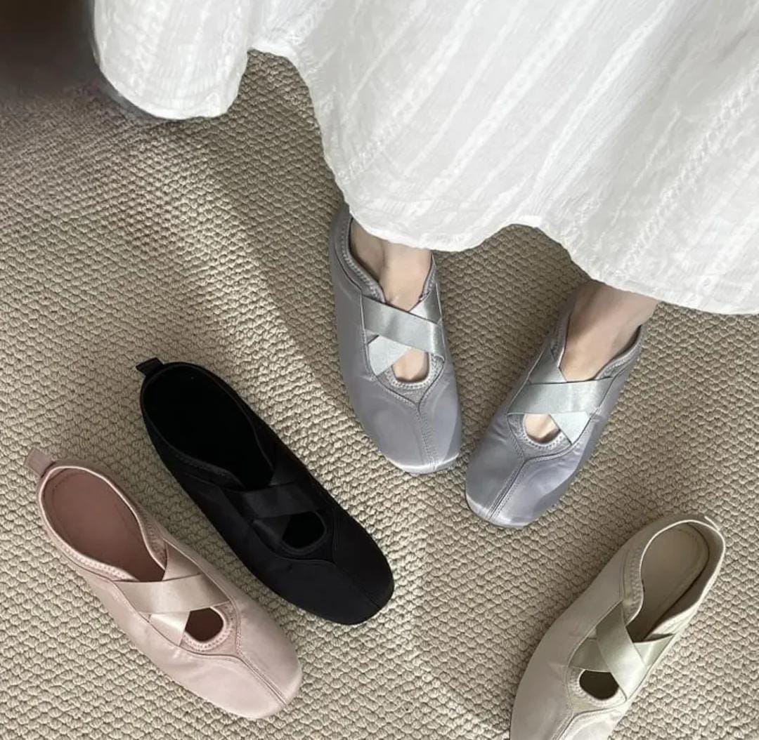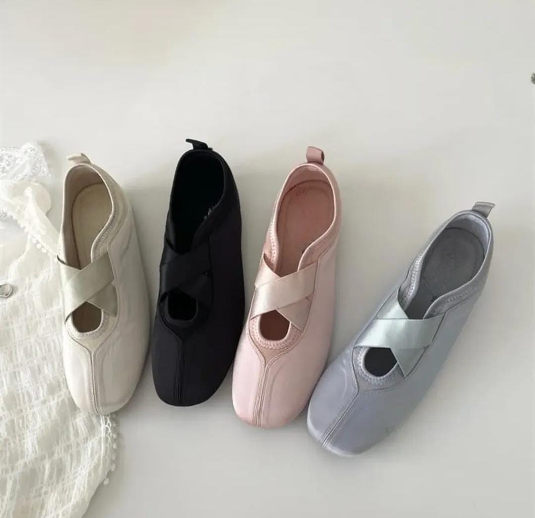 Criss Cross Strap Satin Flat Ballerina