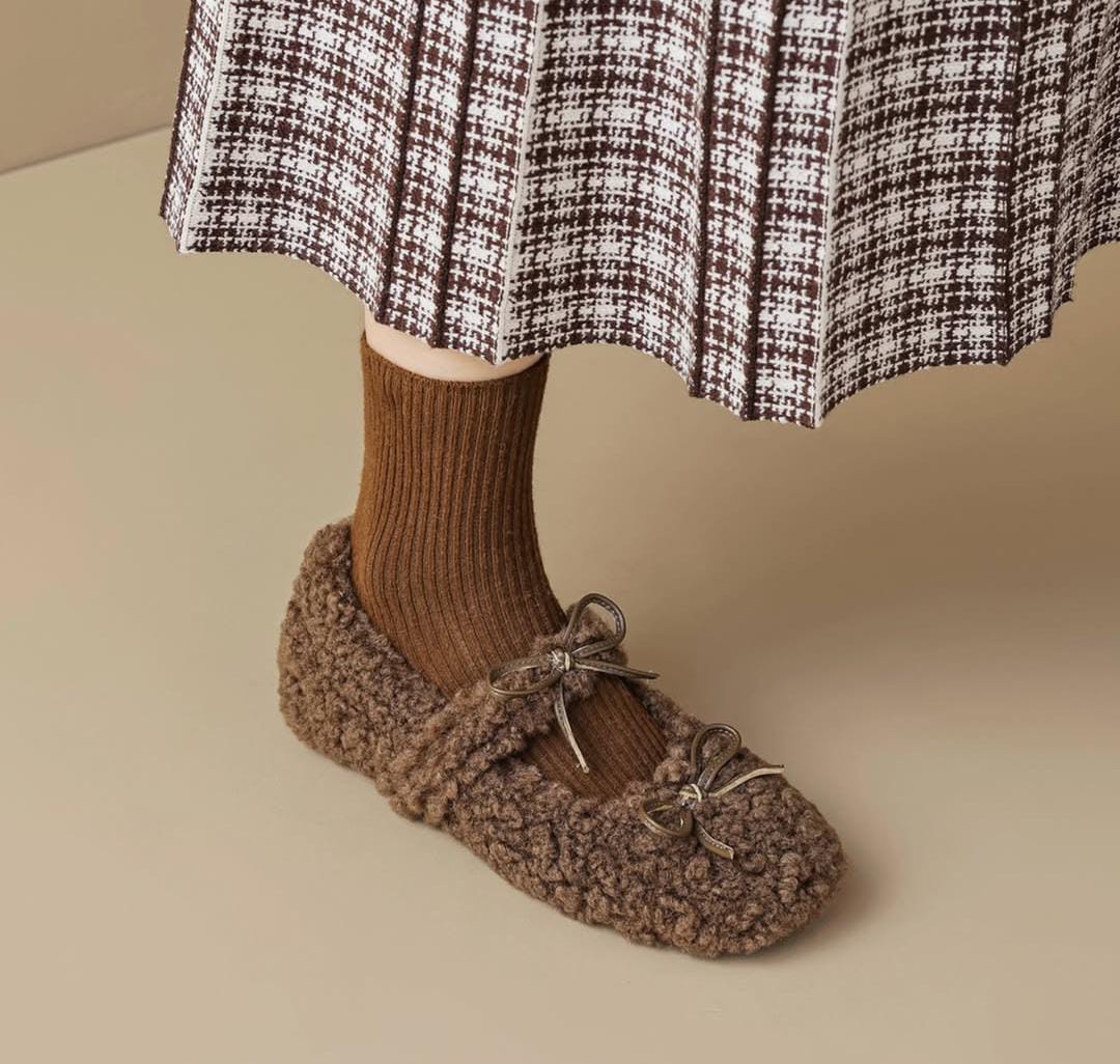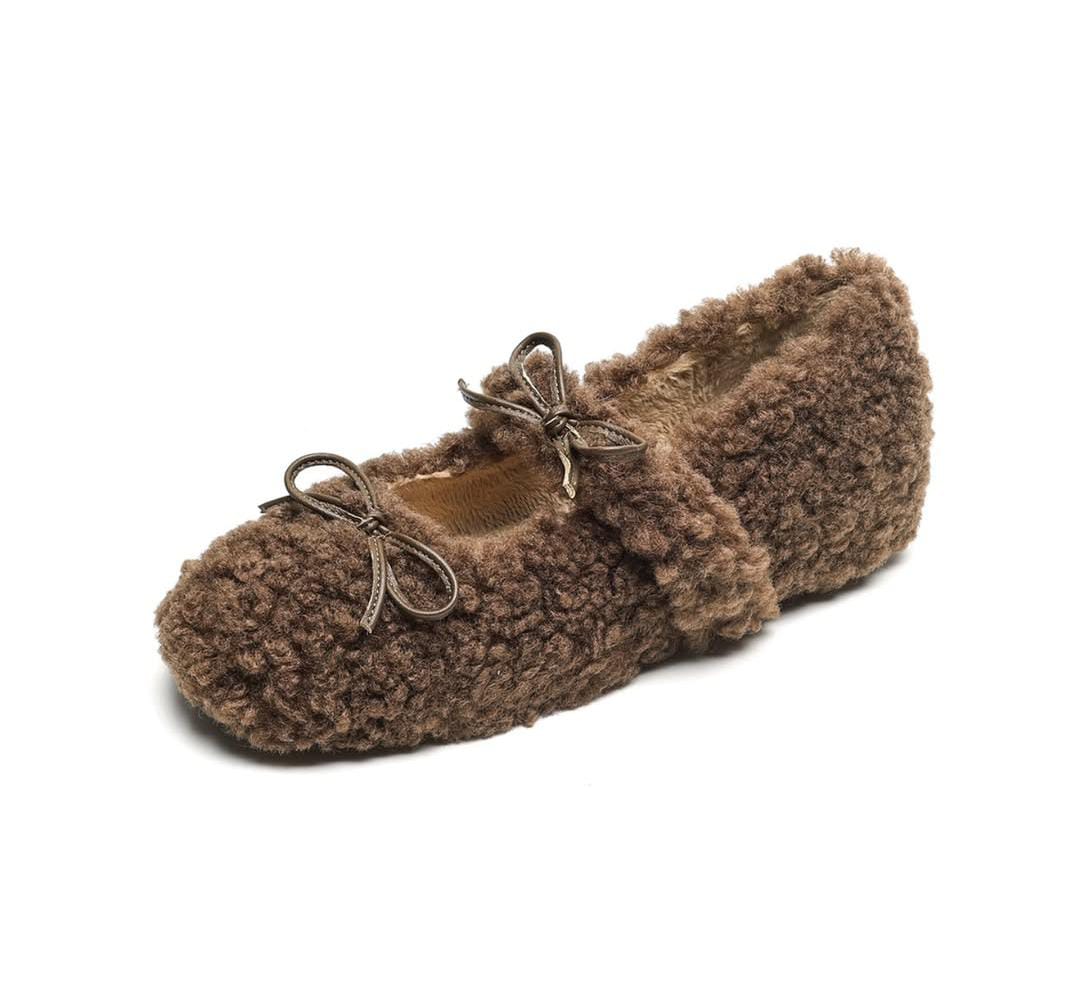 Step into playful elegance with our Womens Curly Fur Mary Janes, designed for comfort and style. Crafted with soft curly faux fur, these Mary Janes provide plush warmth while the two cute bows add a whimsical, feminine touch. The classic Mary Jane design ensures a secure fit with a comfortable strap, while the cushioned sole supports all-day wear. Ideal for indoor lounging, casual outings, or adding a cozy accent to your outfit, these shoes combine function and fashion seamlessly. Lightweight, durable, and irresistibly cute, they are a must-have for women who love cozy footwear with a charming twist.