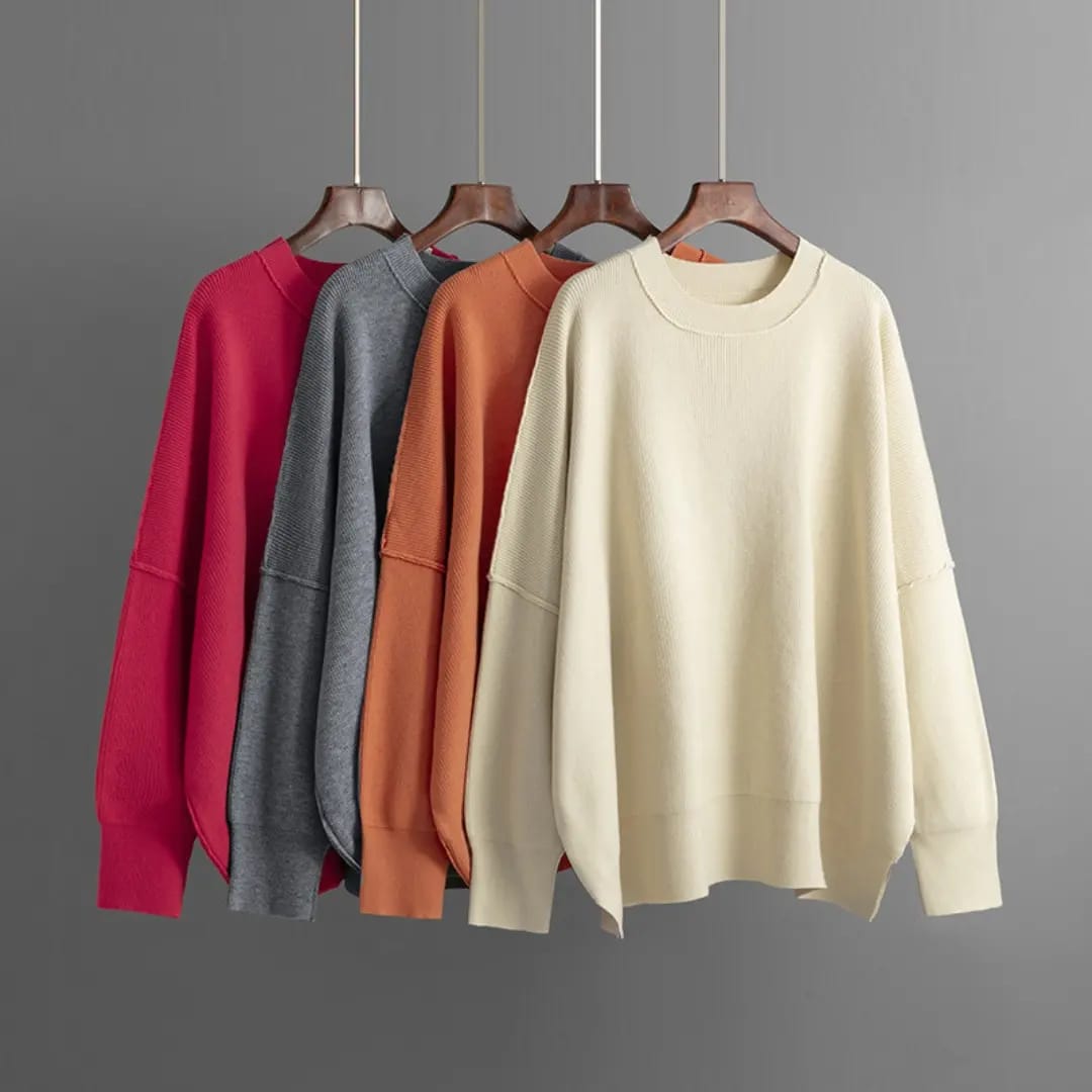 Stay comfortable and stylish with our Dropped Shoulders Round Neck Sweater. Made from soft, breathable knit fabric, this sweater features a relaxed fit with dropped shoulder seams for a laid-back, contemporary look. The classic round neckline adds versatility, making it easy to layer or wear on its own. Perfect for casual days, lounging at home, or pairing with jeans or skirts, this sweater combines simplicity with a modern edge. Its cozy texture and easy fit make it a go-to piece for cool weather and effortless styling.