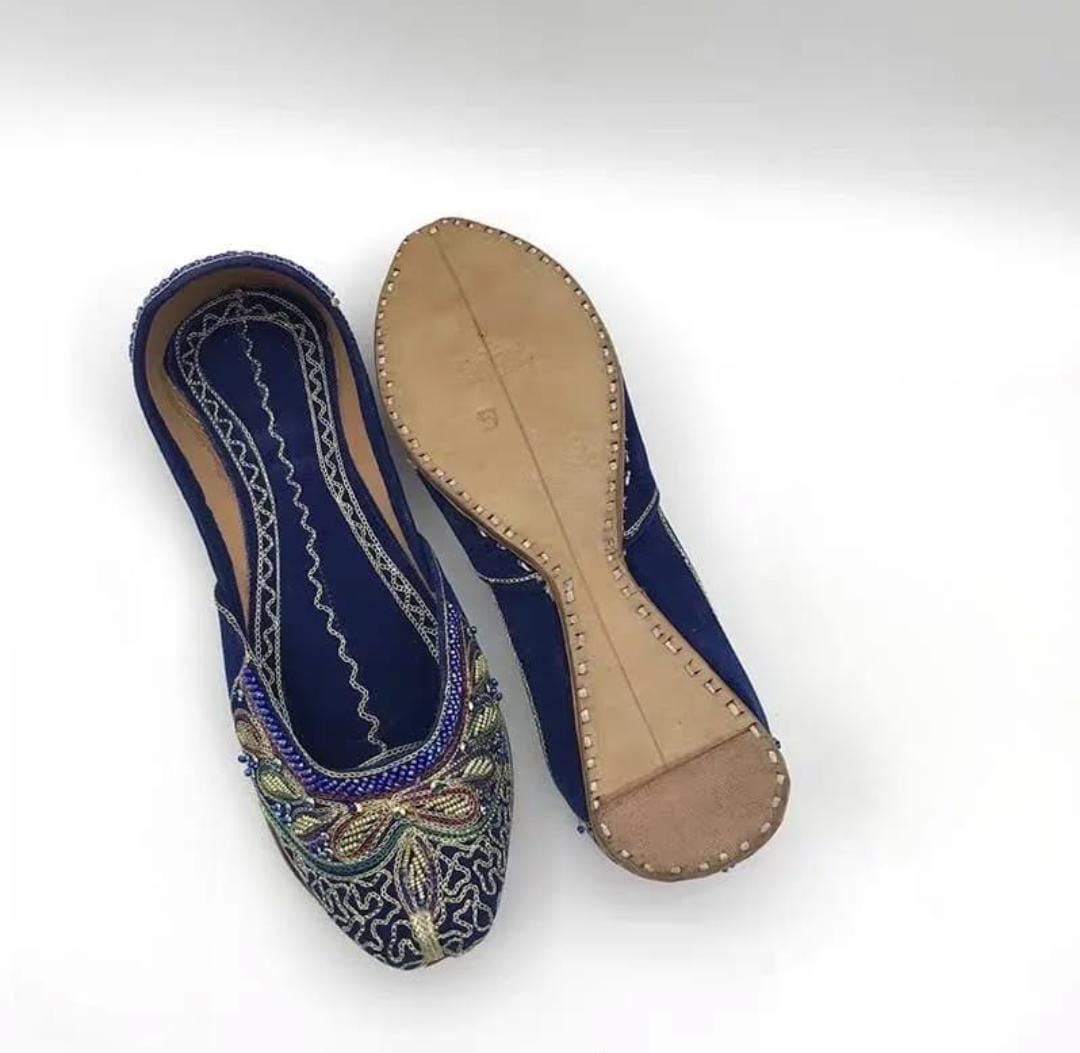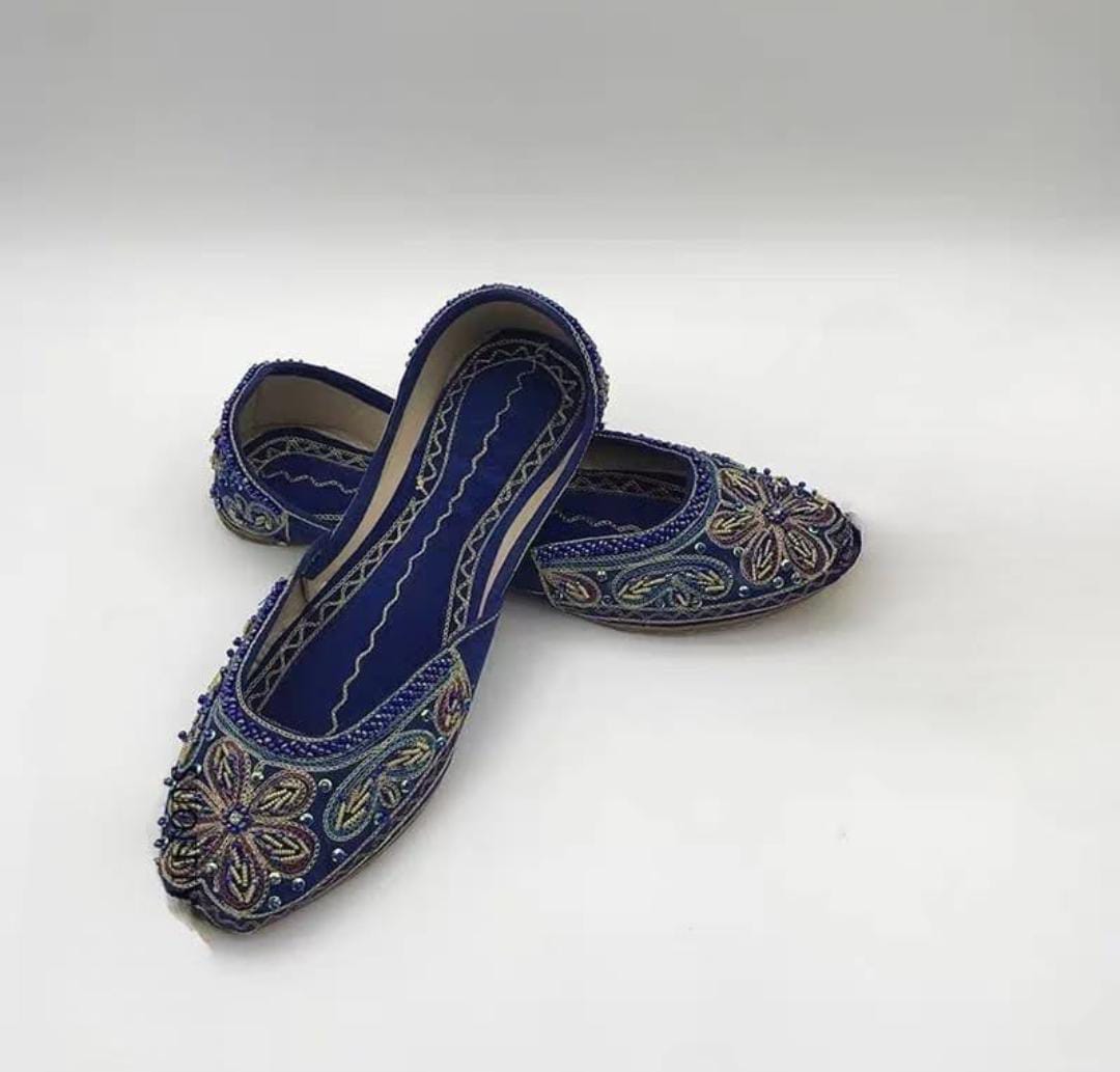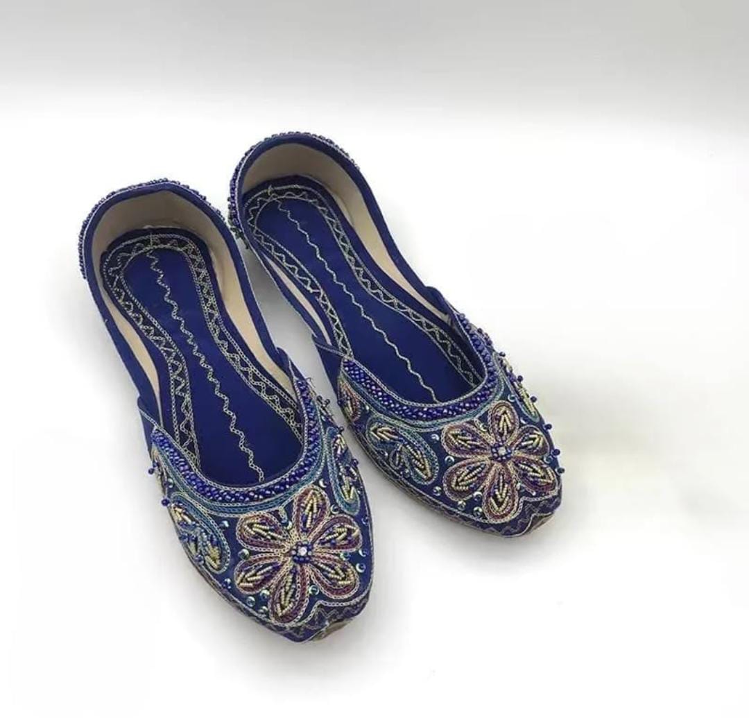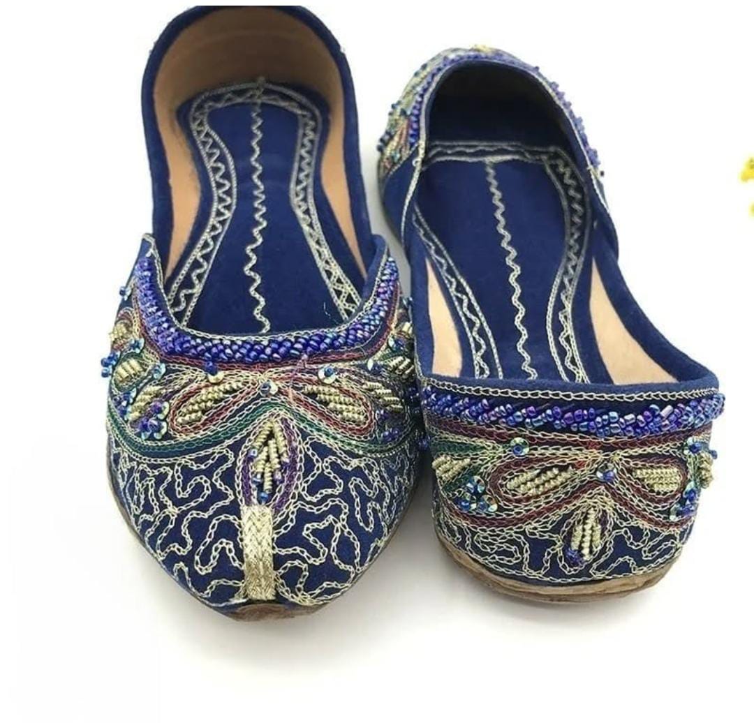 Embrace cultural elegance with these Womens Ethnic Floral Beaded Flat Round Toe Ballerinas, featuring vibrant floral beadwork and a comfortable design. Perfect for casual outings or special occasions.