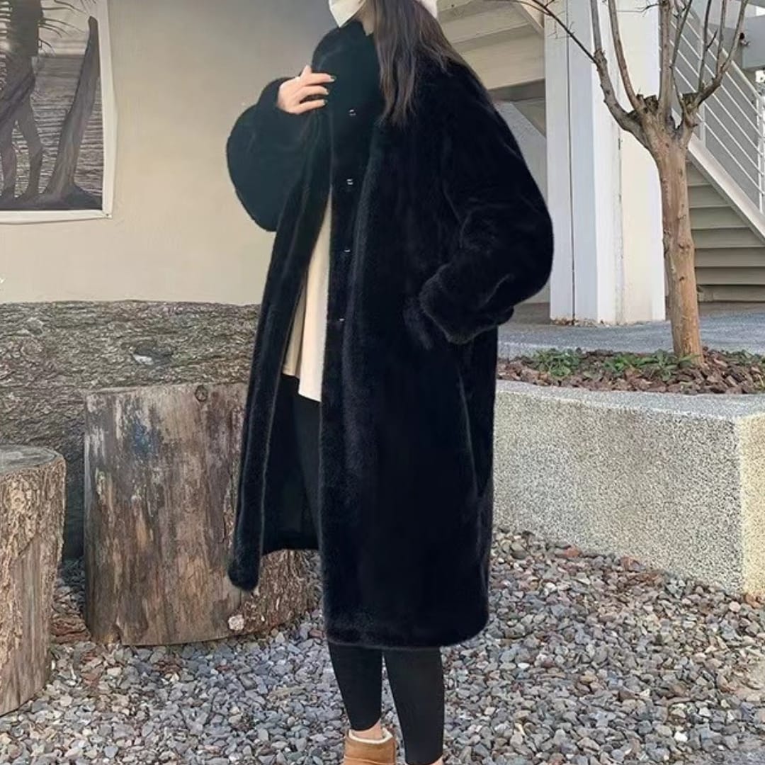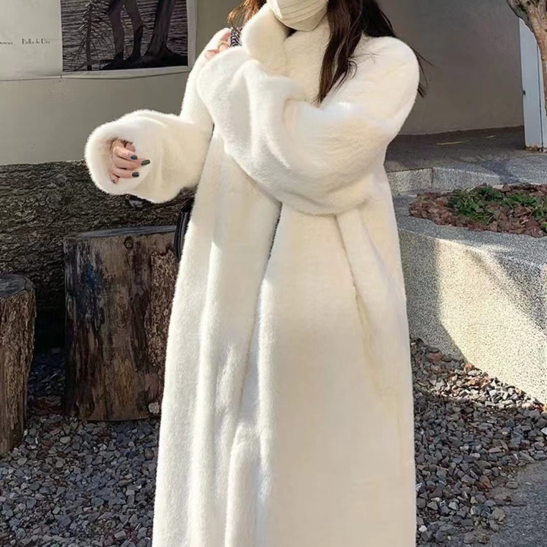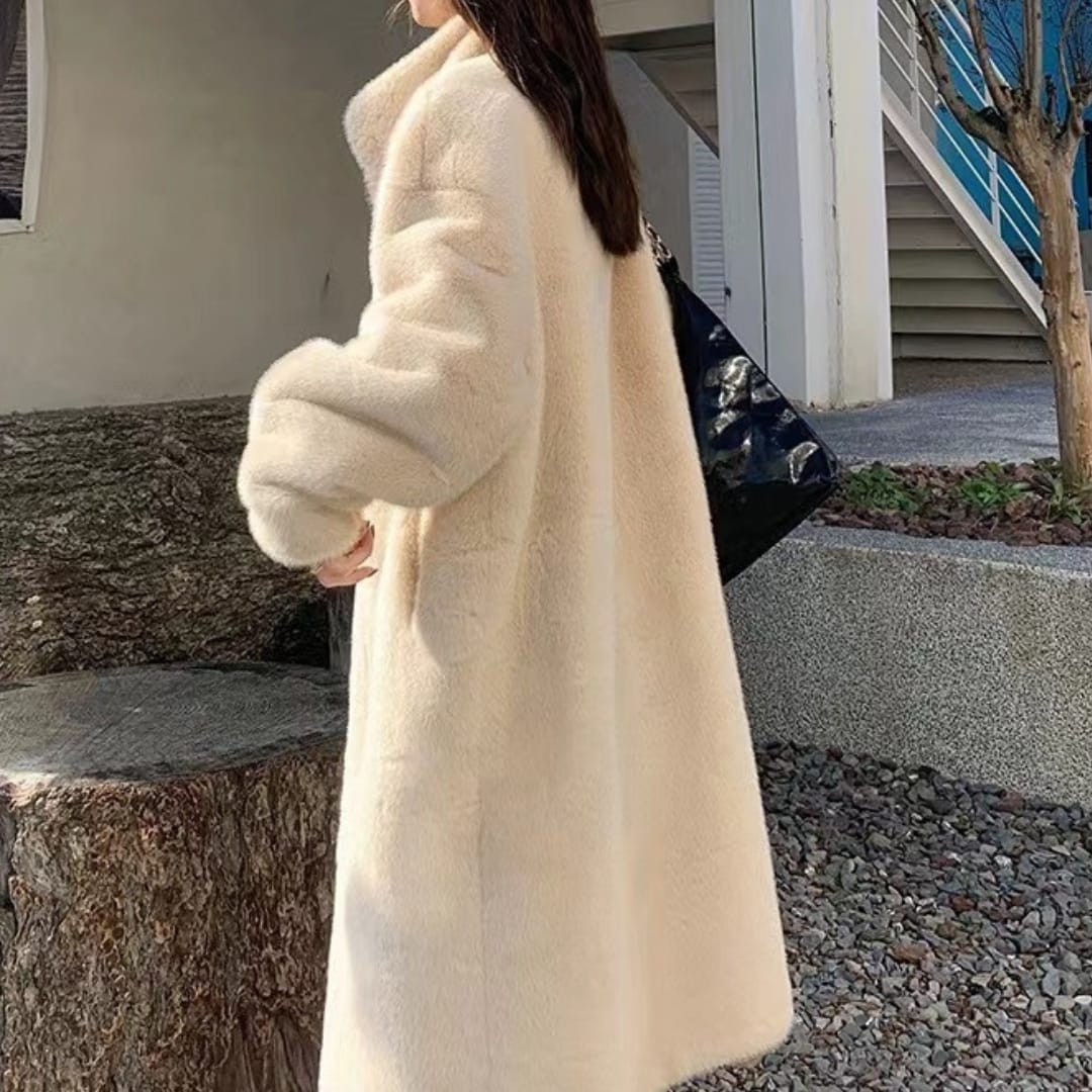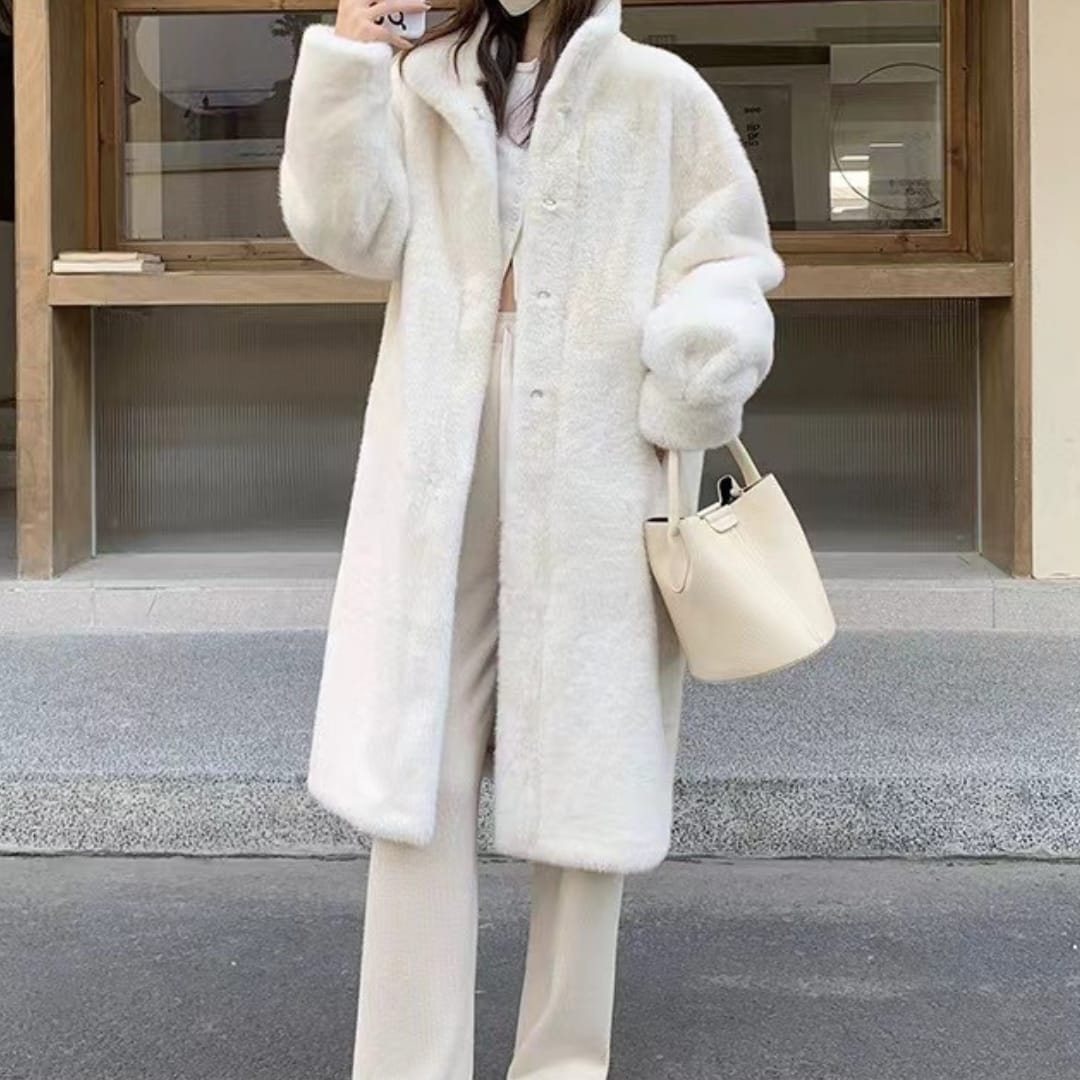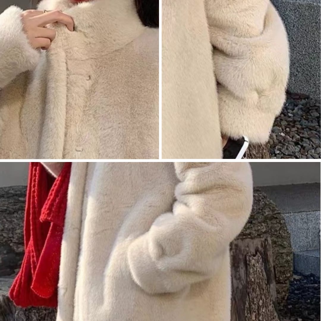 Stay cozy and stylish with the Faux Fur Fleeced Stand-Up Collar Winter Mid-Length Coat, featuring plush warmth, a chic high collar, and a versatile mid-length design for cold-weather fashion.