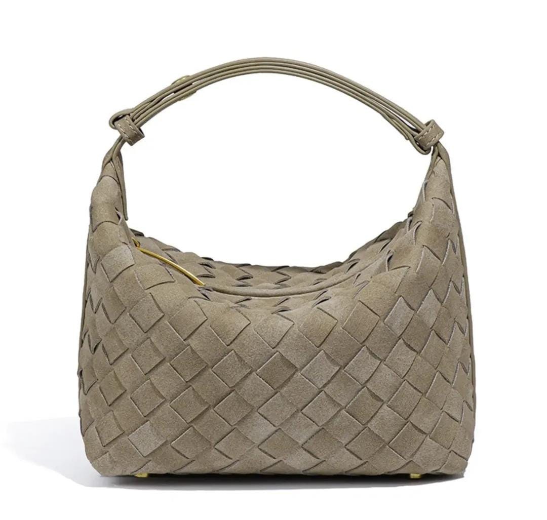 Upgrade your style with this Faux Leather Bucket Suede Weaved Bag, featuring a unique woven design and spacious bucket silhouette. Perfect for everyday use and effortlessly chic.