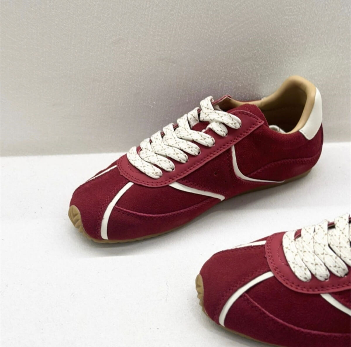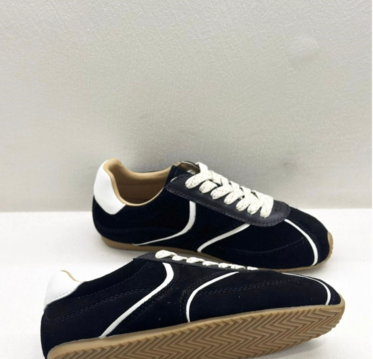 Women Faux Suede Contrast Trim Sneakers trendy, lightweight casual sneakers featuring soft faux suede and stylish contrast detailing for all-day comfort and modern street style.