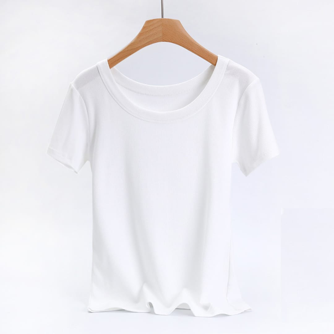 Stay casual and cool with the Womens Summer Ribbed O-Neck T-Shirt soft, breathable, and a perfect everyday essential.