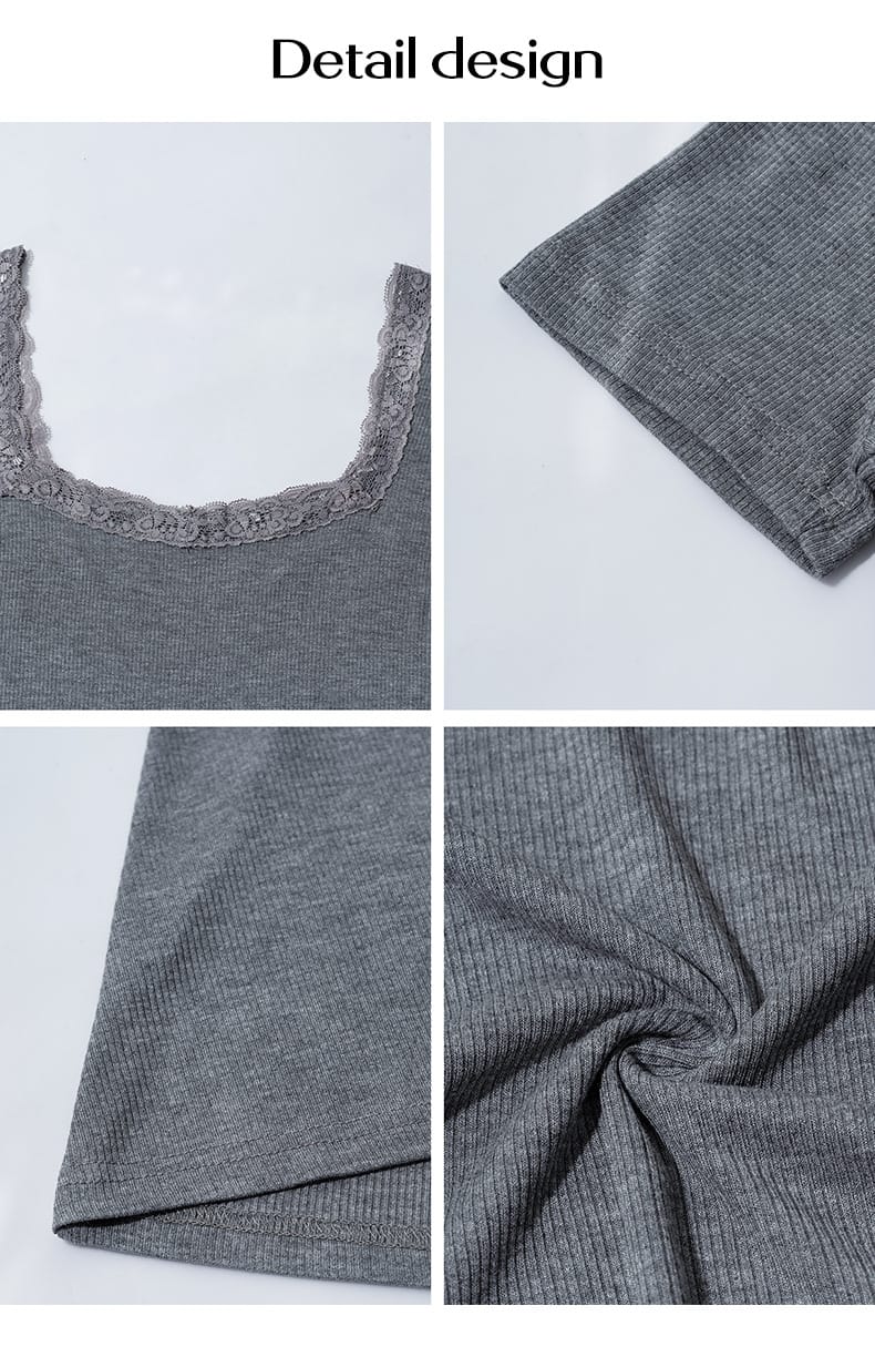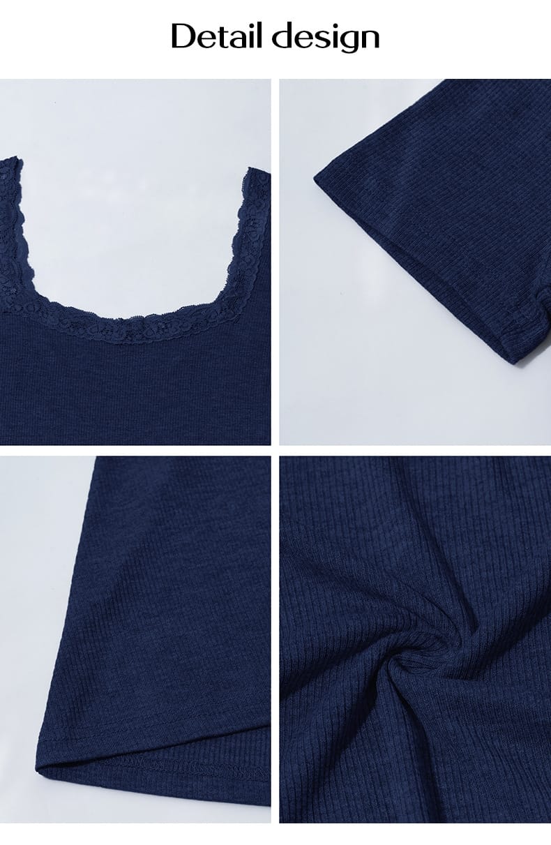 Add a touch of romance to your wardrobe with this Fitted Tee featuring a square collar and delicate lace trims.
