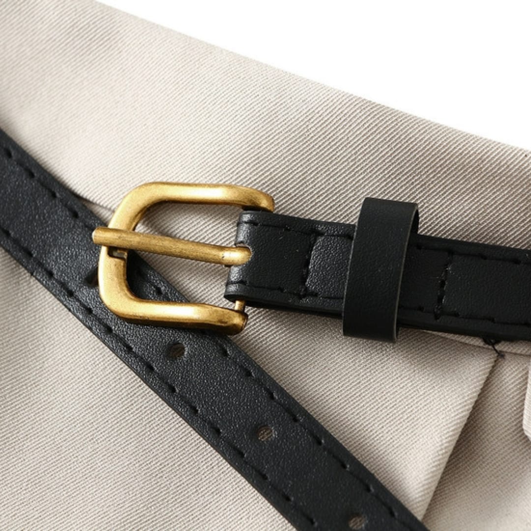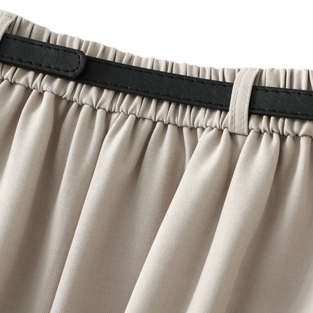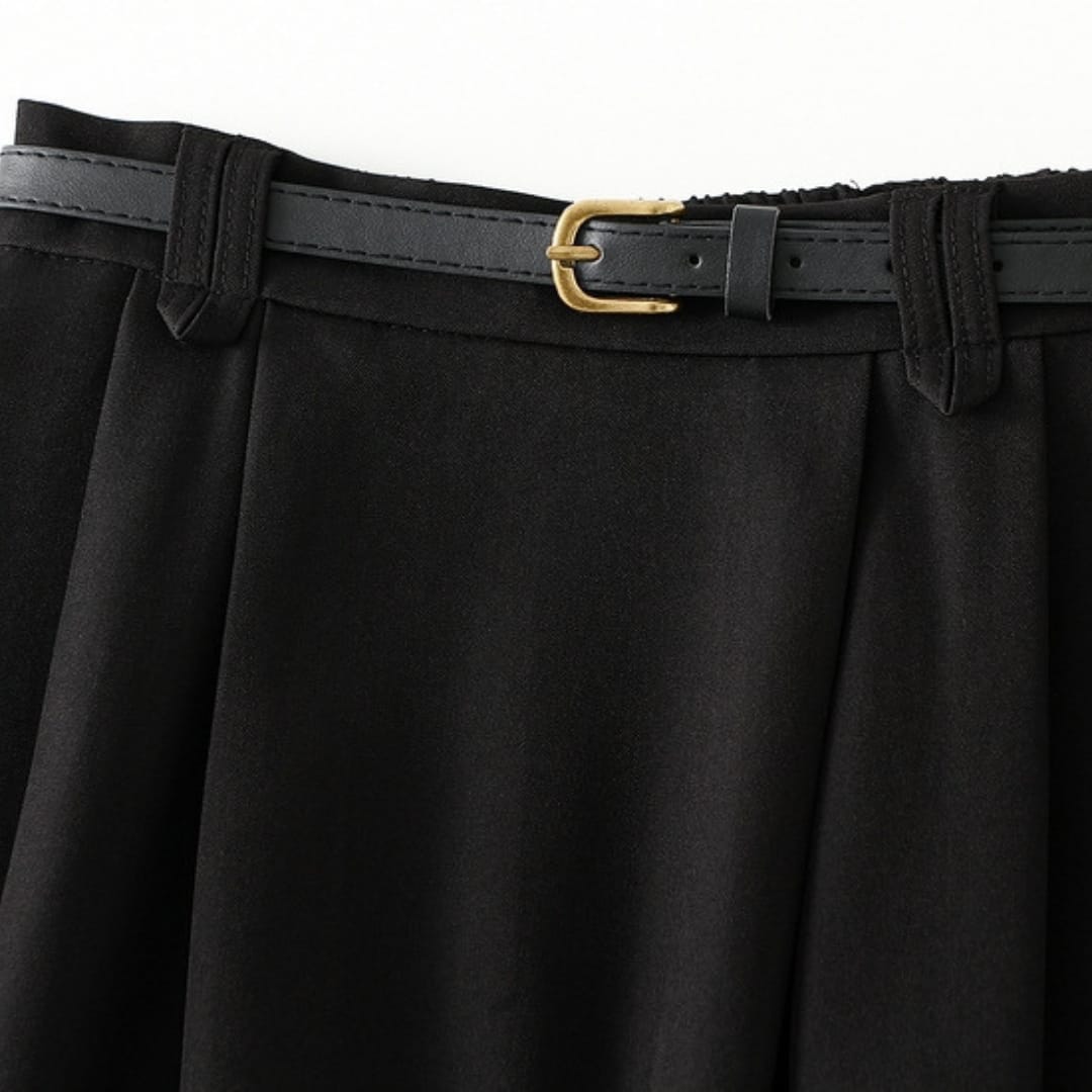 Elevate your wardrobe with our Womens Flared Minimalistic Modern Skirt with Belt. Designed for a contemporary and refined look, this skirt features a flattering flared silhouette and a stylish belt that cinches the waist, enhancing your natural shape. Its minimalistic design makes it easy to pair with blouses, shirts, or casual tops, offering versatile styling options for office wear, brunch dates, or evening gatherings. Crafted from high-quality fabric, this skirt ensures comfort and durability without compromising on elegance. Embrace effortless sophistication and modern style with this must-have addition to your collection.