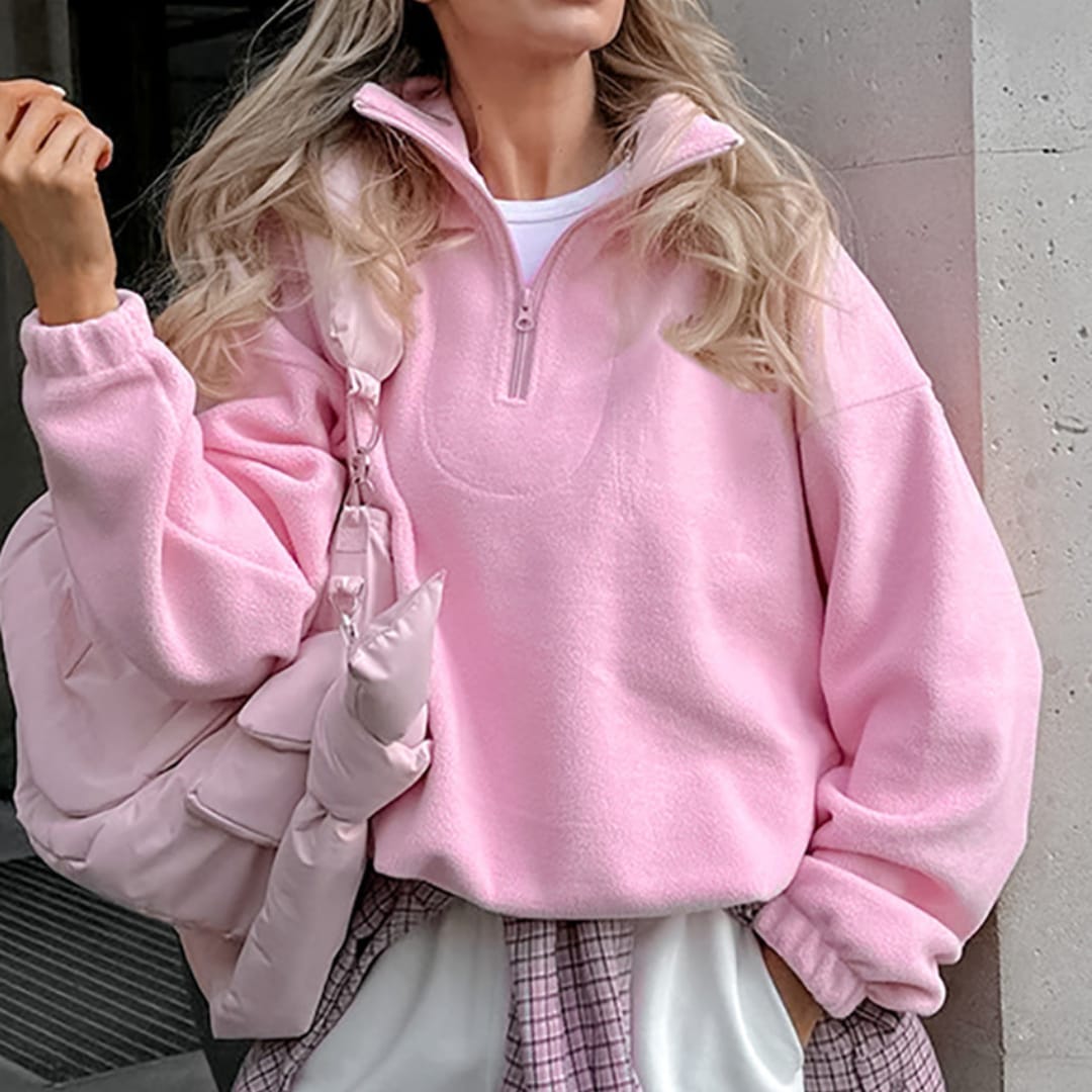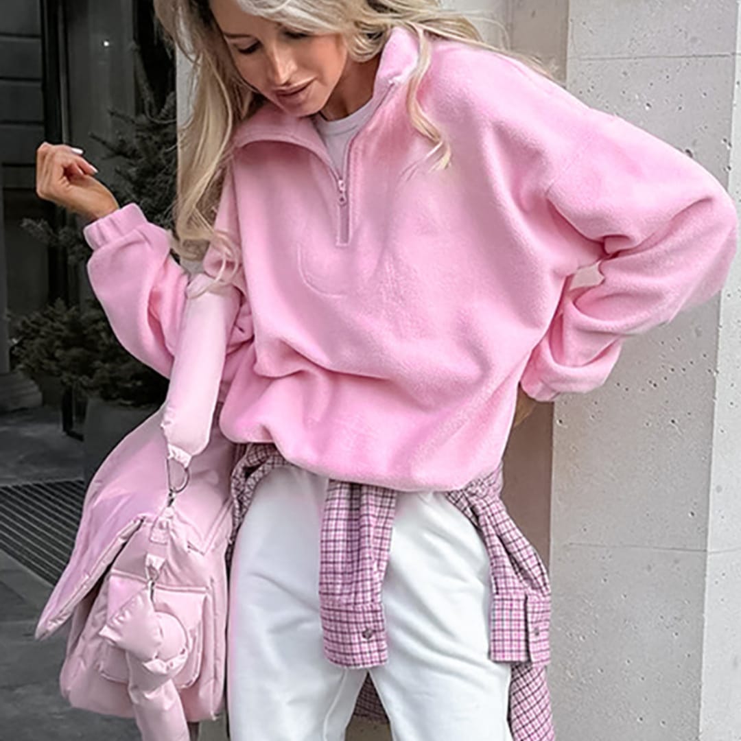 Stay cozy and stylish in our Fleece Half Zip Pink Sweater, perfect for layering on chilly days.