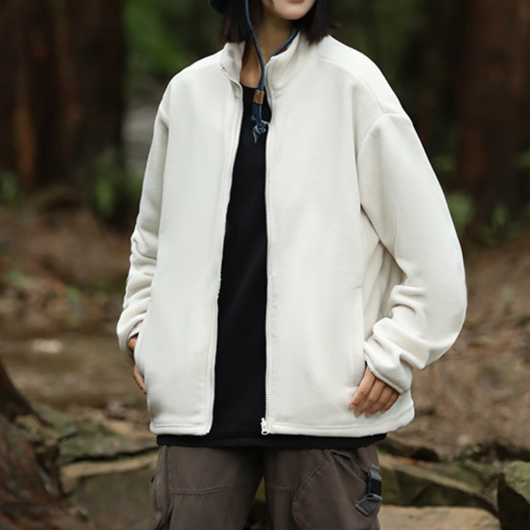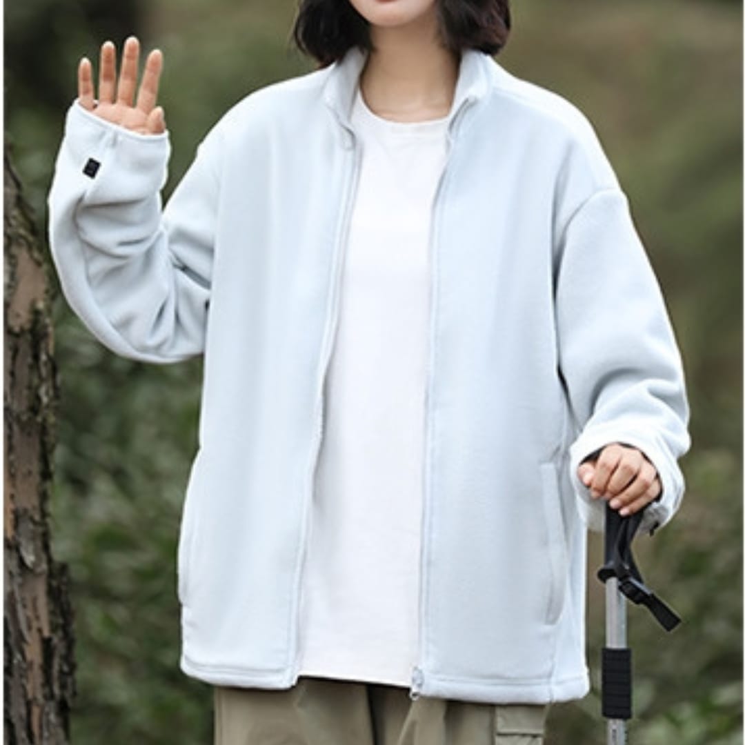 Stay warm in style with this cozy unisex fleeced zip-up jacketperfect for layering in chilly weather.