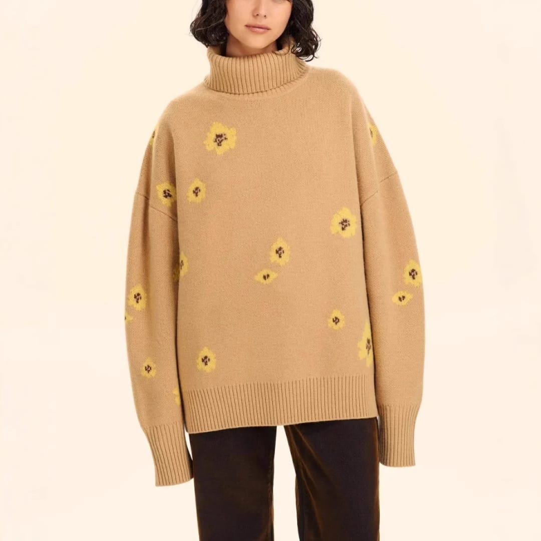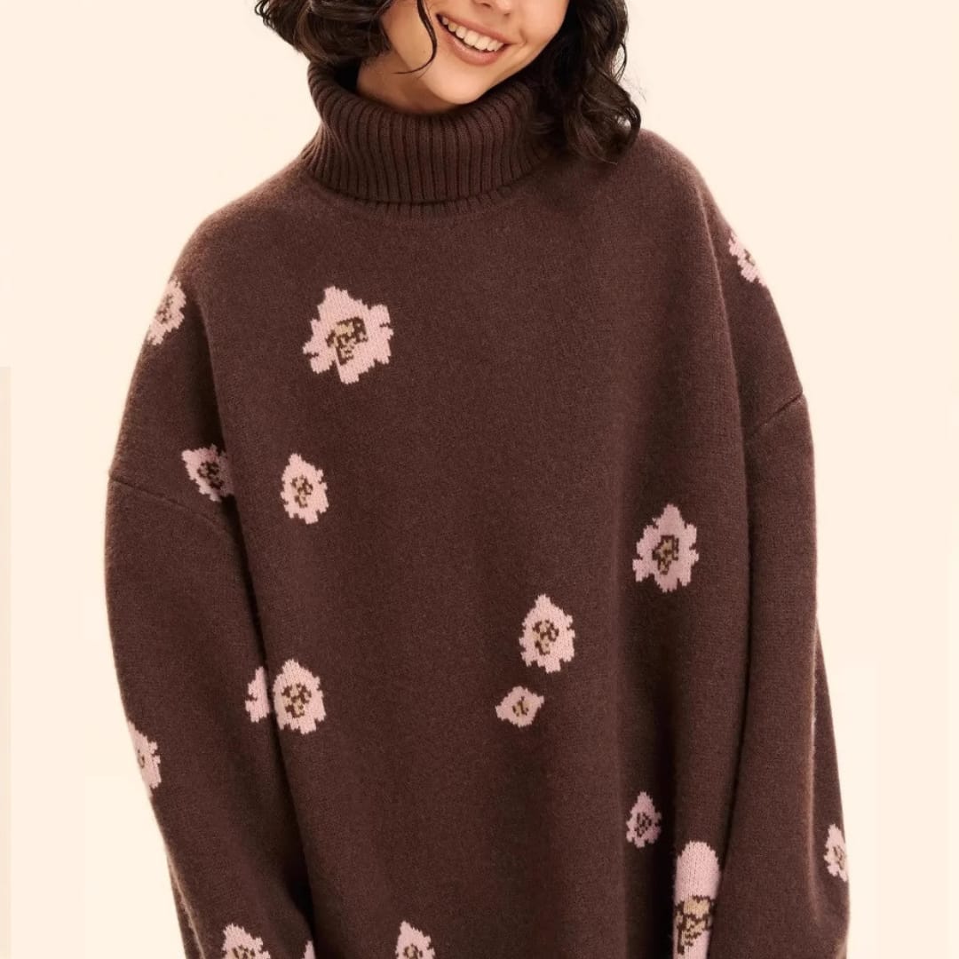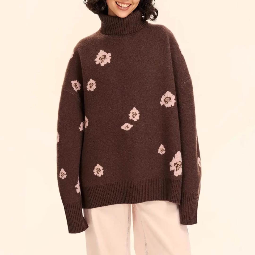 Floral Knitted Turtleneck Sweater