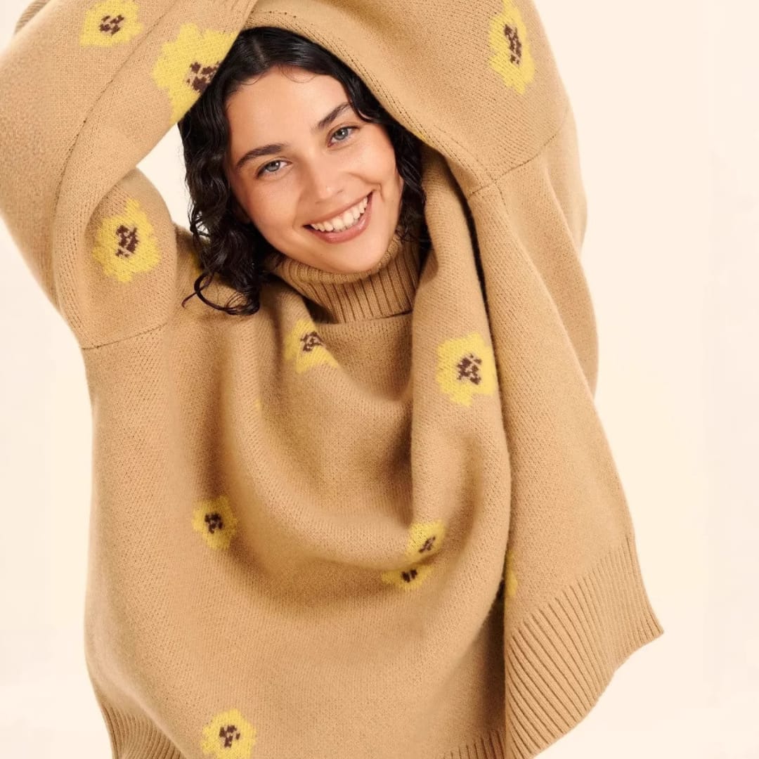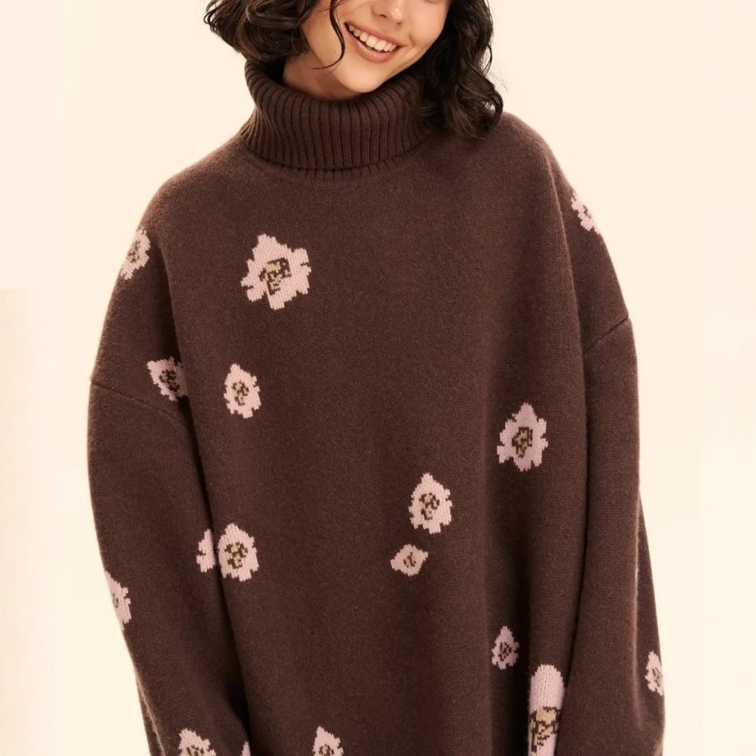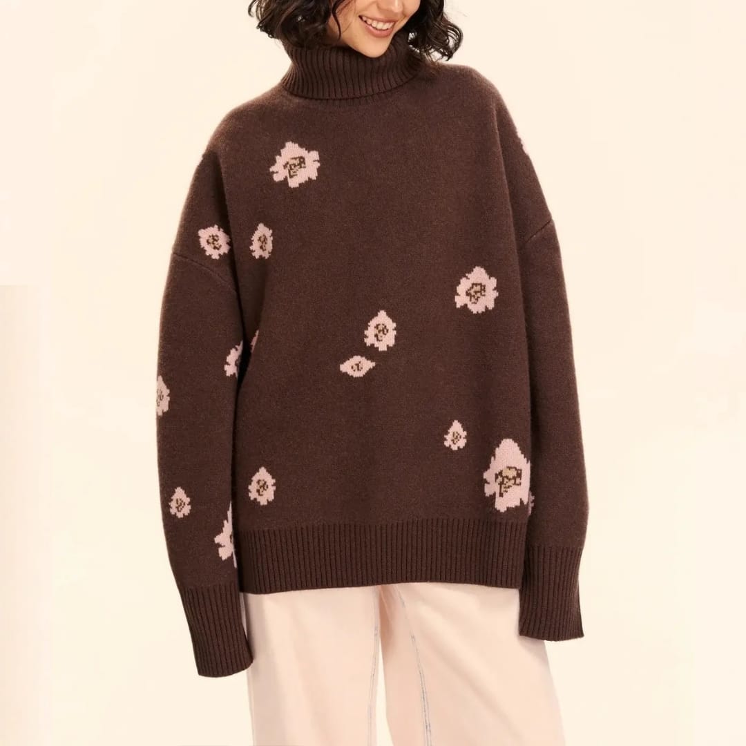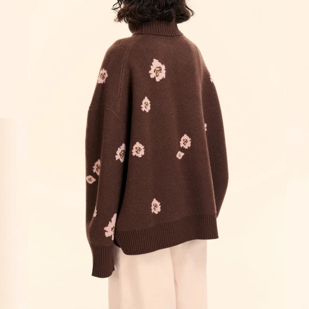 Floral Knitted Turtleneck Sweater
