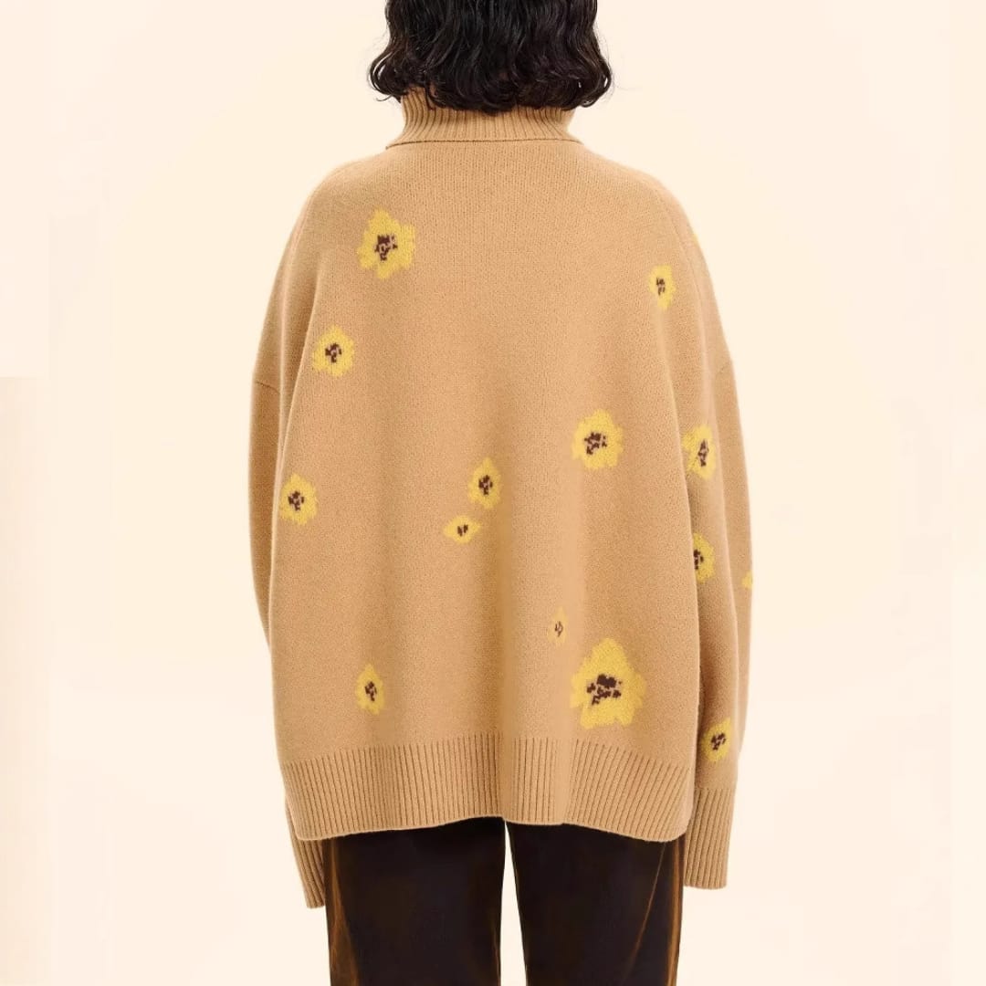 Add a touch of luxury to your cold-weather wardrobe with this Women’s Heavyweight Loose Fit Turtleneck Jacquard Floral Knitted Sweater warm, elegant, and beautifully detailed for effortless seasonal style.