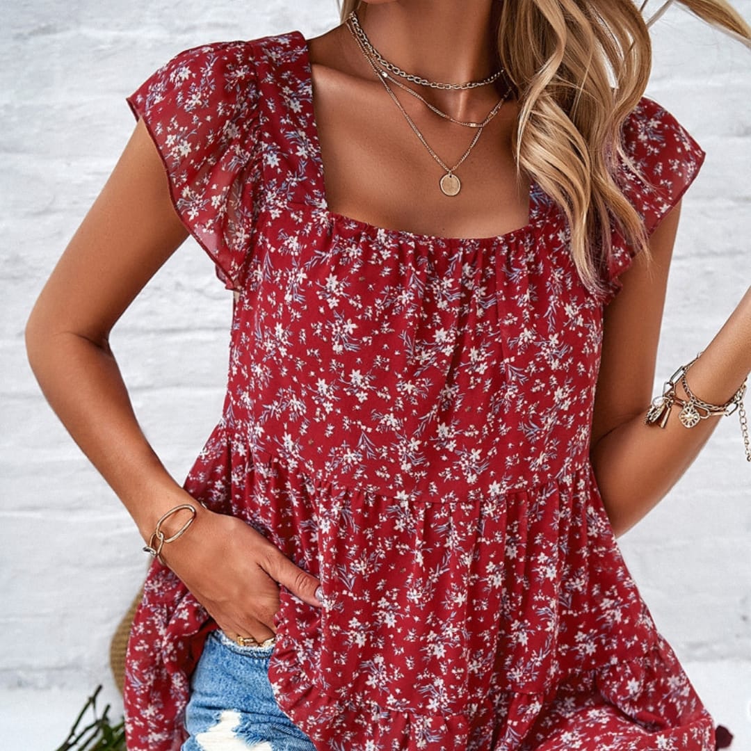 Embrace graceful charm with our Floral Peplum Bodice with Flutter Sleeves a romantic top designed to flatter every figure. Featuring a fitted bodice with a gentle peplum flare, this piece highlights the waist while offering a comfortable, relaxed fit. The delicate floral print adds softness, while flutter sleeves bring a breezy, feminine touch. Crafted from lightweight, breathable fabric, its perfect for brunches, date nights, or summer strolls. Pair it with high-waisted jeans, skirts, or trousers for a chic and versatile look that transitions effortlessly from day to night.