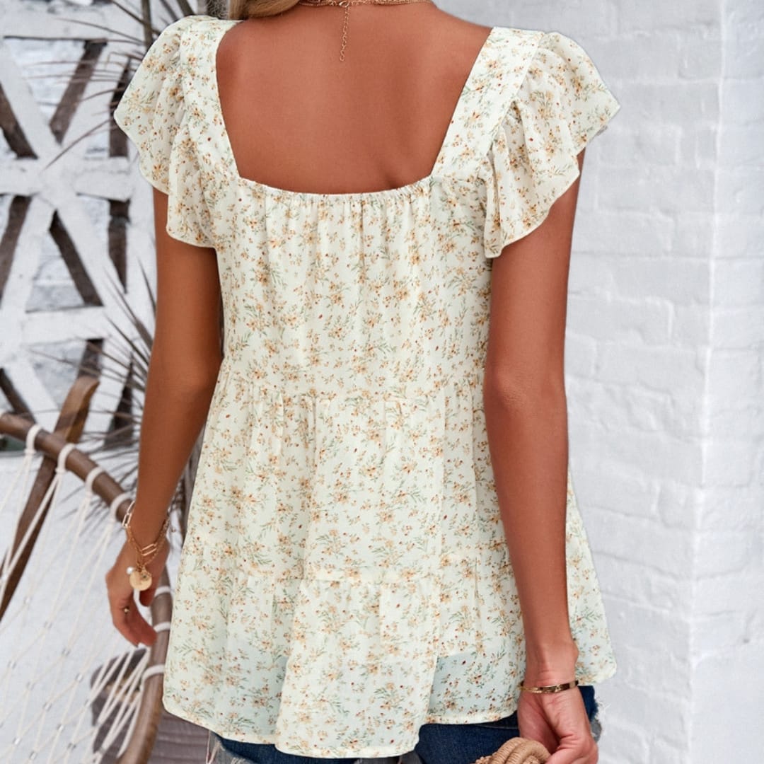 Feminine and flattering, our Floral Peplum Bodice with Flutter Sleeves blends soft romance with everyday elegance.