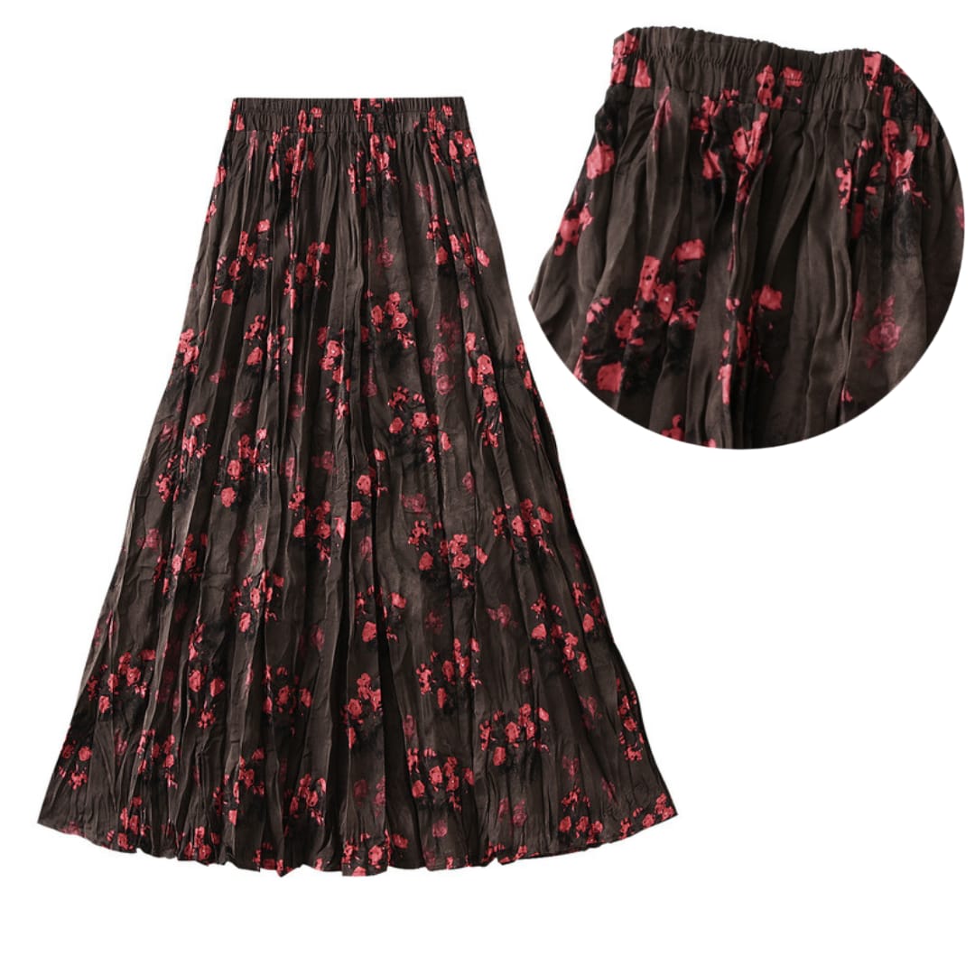 Chic meets comfort with this Floral Printed Wrinkled Midi Skirt—featuring soft fabric, hidden pockets, and all-day style.