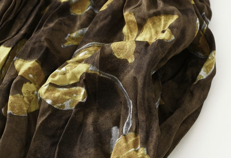 Floral Printed Wrinkled Midi Skirt with Hidden Pockets