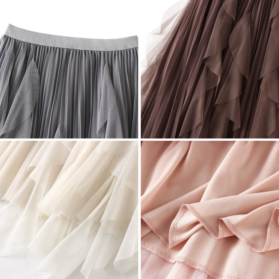 Elevate your wardrobe with this Women Frilled and Pleated Tulle Midi Skirt. Featuring delicate pleats and soft frilled layers, this skirt offers a romantic, feminine style perfect for parties, dates, or elegant everyday looks.