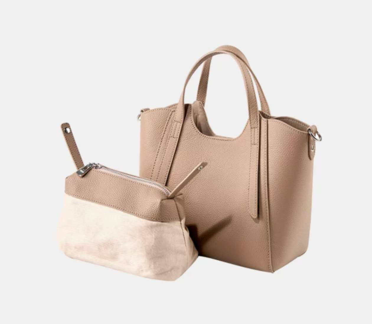 Genuine Leather Handbag with Strap Detail