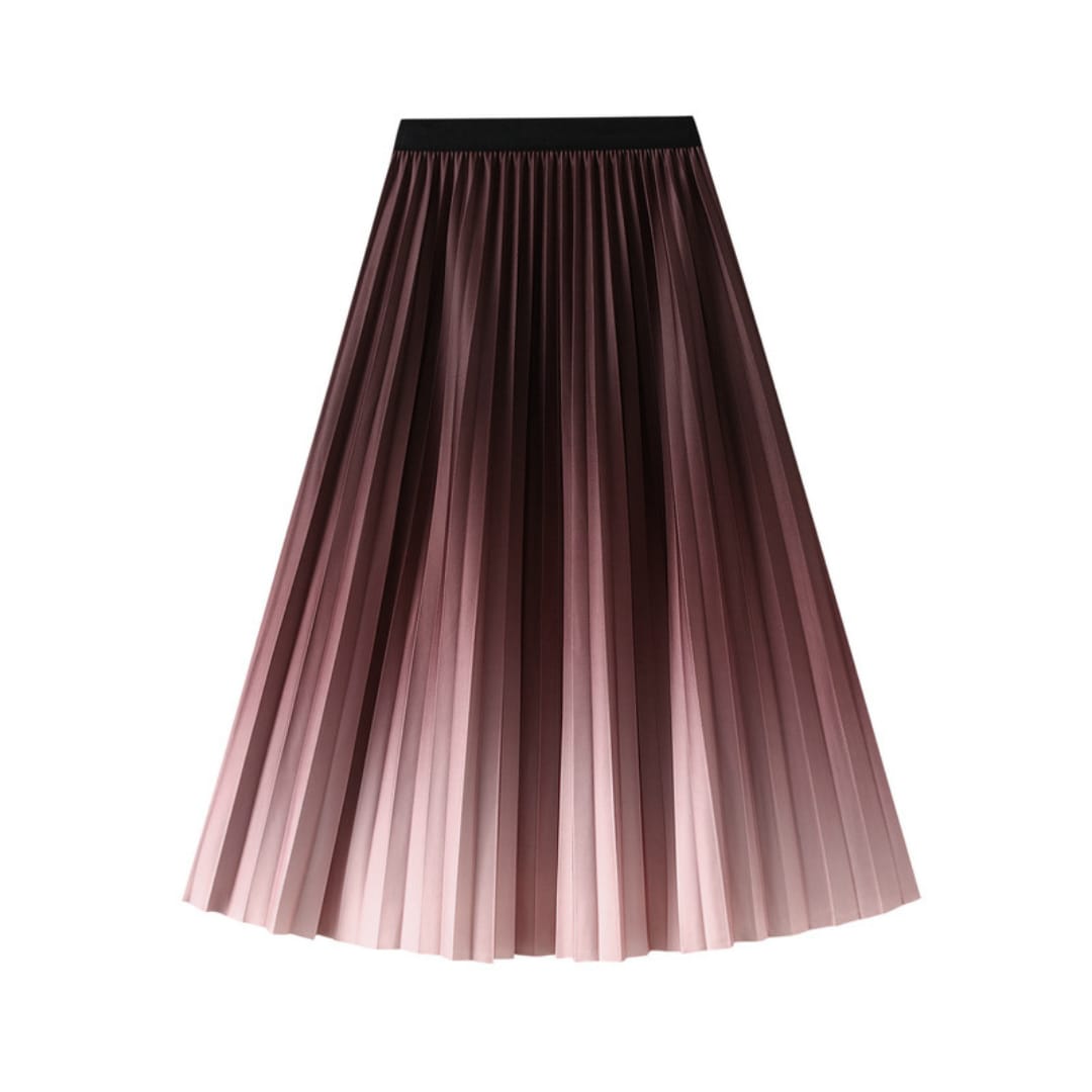 Gradient Pleated Midi A-line Skirt