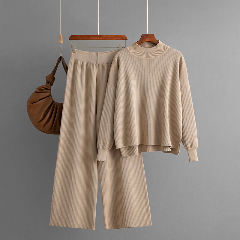 Stay fashion-forward and comfortable with this Set of Half Turtle Neck Lantern Sleeve Knitted Sweater and Casual Wide Leg Pants. Designed for women who love cozy sophistication, the soft knitted fabric offers warmth and flexibility for fall, winter, and spring seasons. The half turtleneck adds a touch of refinement, while the lantern sleeves create a stylish, relaxed silhouette. Paired with flowy wide-leg pants, this matching set delivers a flattering and modern look for lounging, outings, or casual office wear. Perfect for mixing and matching, this knitwear set is your go-to outfit for a chic and comfortable all-day style.