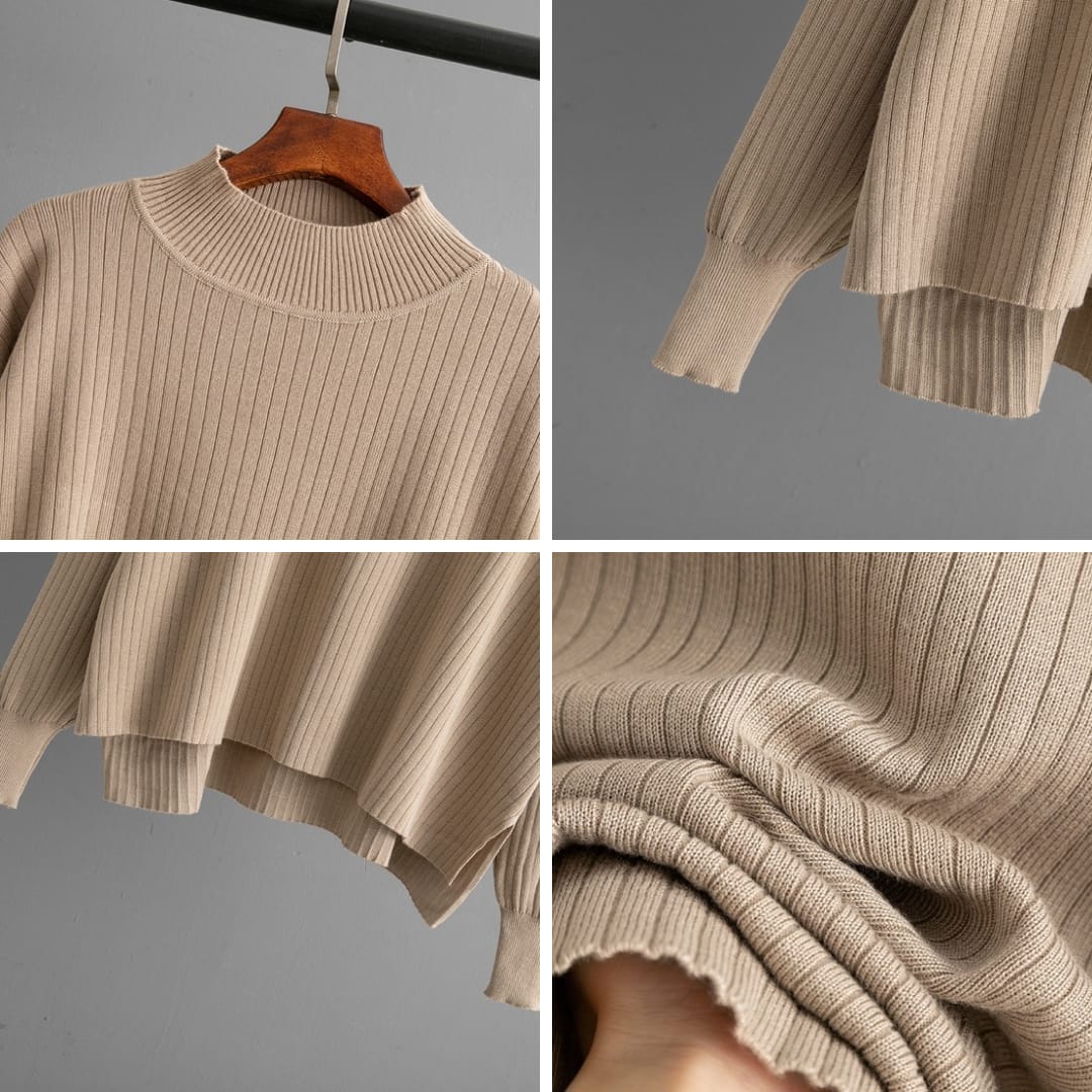 Elevate your everyday style with this Set of Half Turtle Neck Lantern Sleeve Knitted Sweater and Casual Wide Leg Pants — a chic, cozy two-piece ensemble perfect for effortless elegance and comfort.