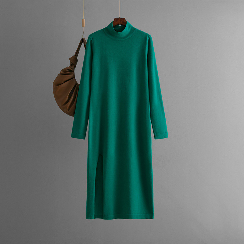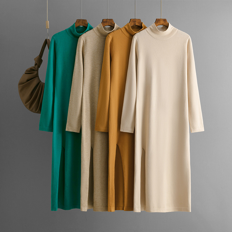 The Fall and Winter Womens Half Turtleneck Long Sleeve Maxi Dress is a perfect combination of warmth, sophistication, and modern style. Crafted from high-quality, soft knit fabric, this dress provides all-day comfort while keeping you cozy during cooler months. The half turtleneck adds a refined touch, and the long sleeves ensure extra warmth. A subtle side slit enhances mobility and adds a chic, feminine flair, making it ideal for both casual outings and more formal occasions. Pair with boots or heels to complete a polished autumn or winter look. A versatile wardrobe essential for effortless elegance.